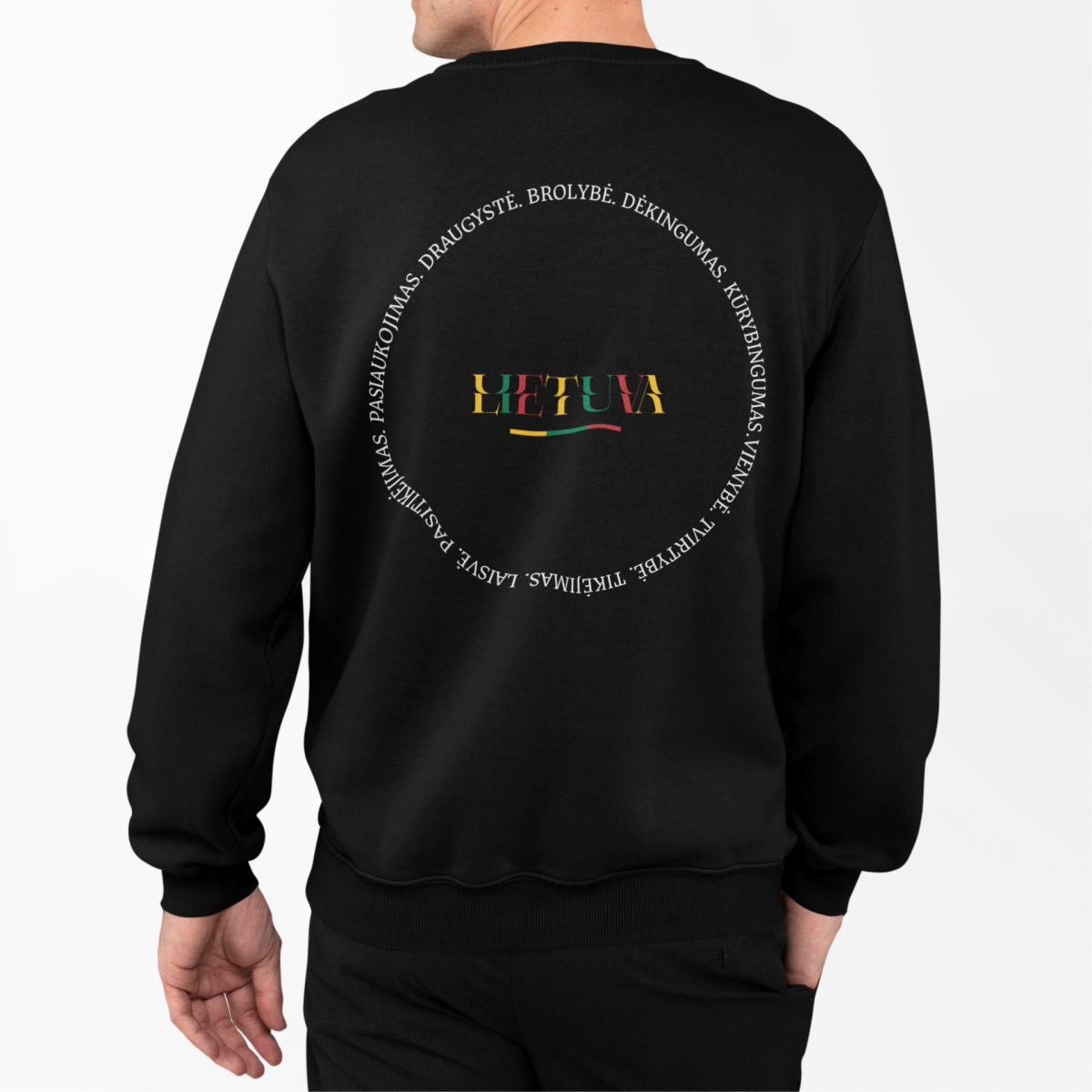 Juodas UNISEX džemperis su spauda ant nugaros "Brolybė"