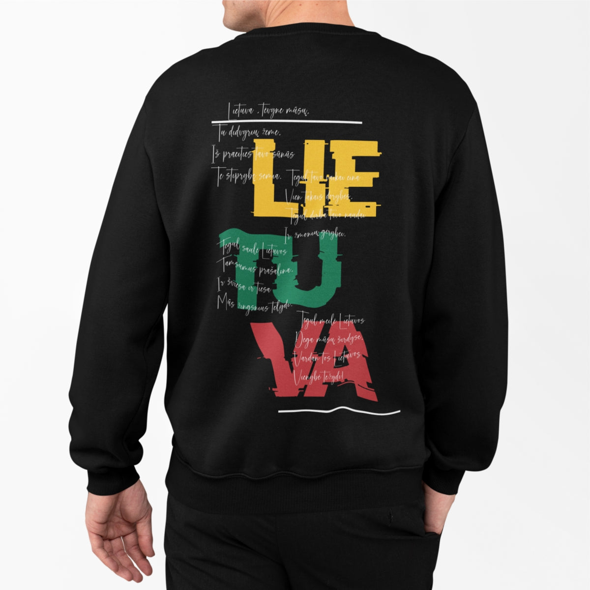 Juodas UNISEX džemperis su spauda ant nugaros "Lietuva, tėvyne mūsų"