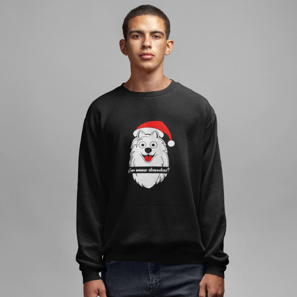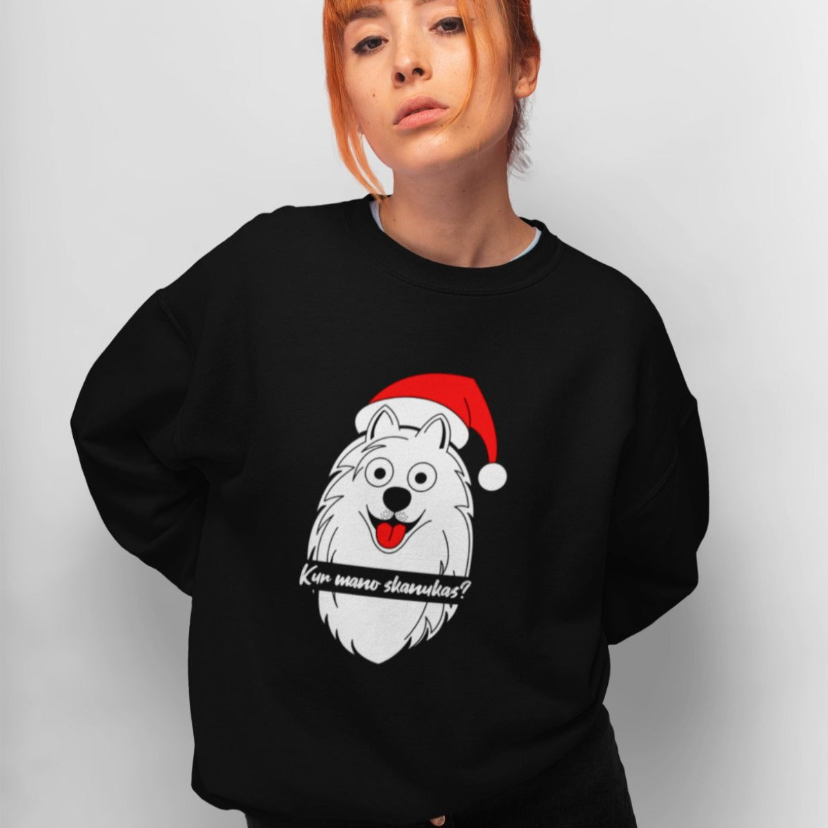 Juodas UNISEX kalėdinis džemperis be gobtuvo "Kur mano skanukas"