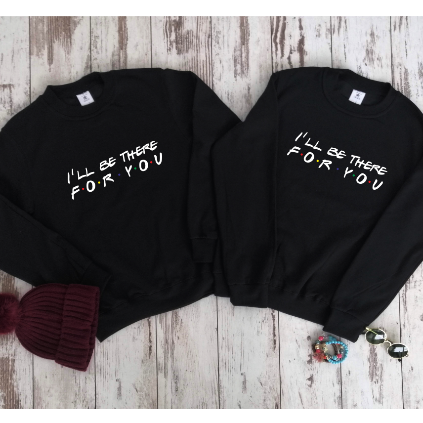 Juodi džemperiai be gobtuvų poroms „I’ll Be There For You“