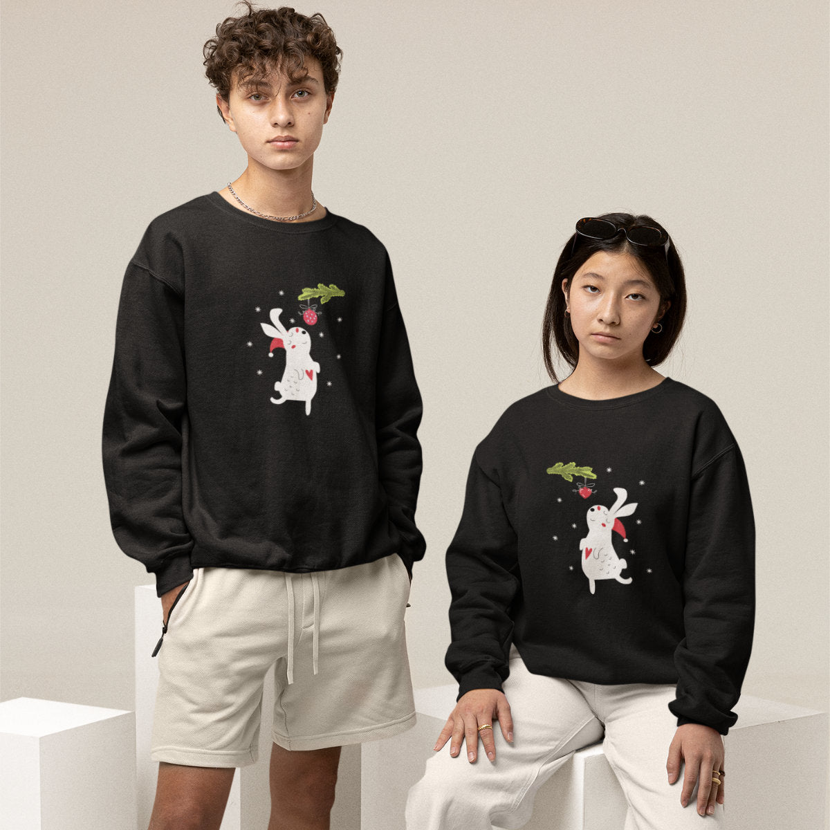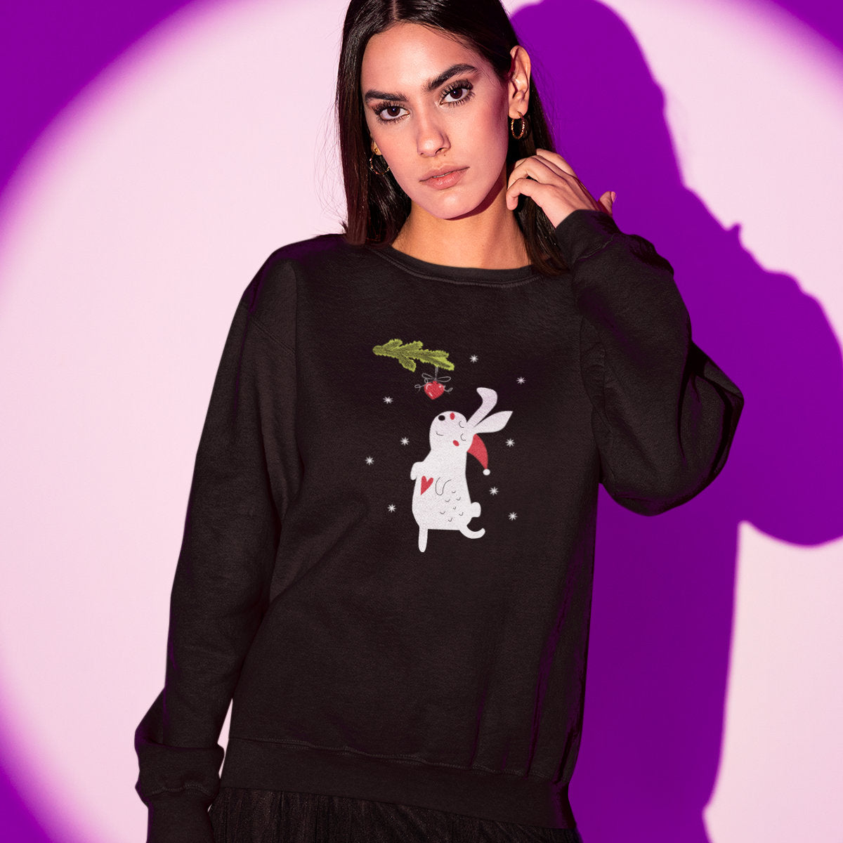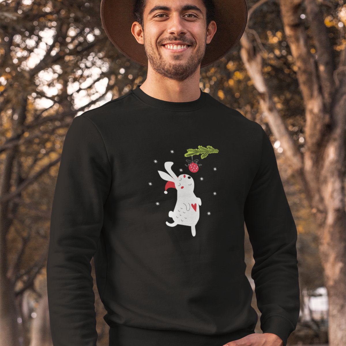 Juodi UNISEX džemperiai "Kalėdų zuikutis“