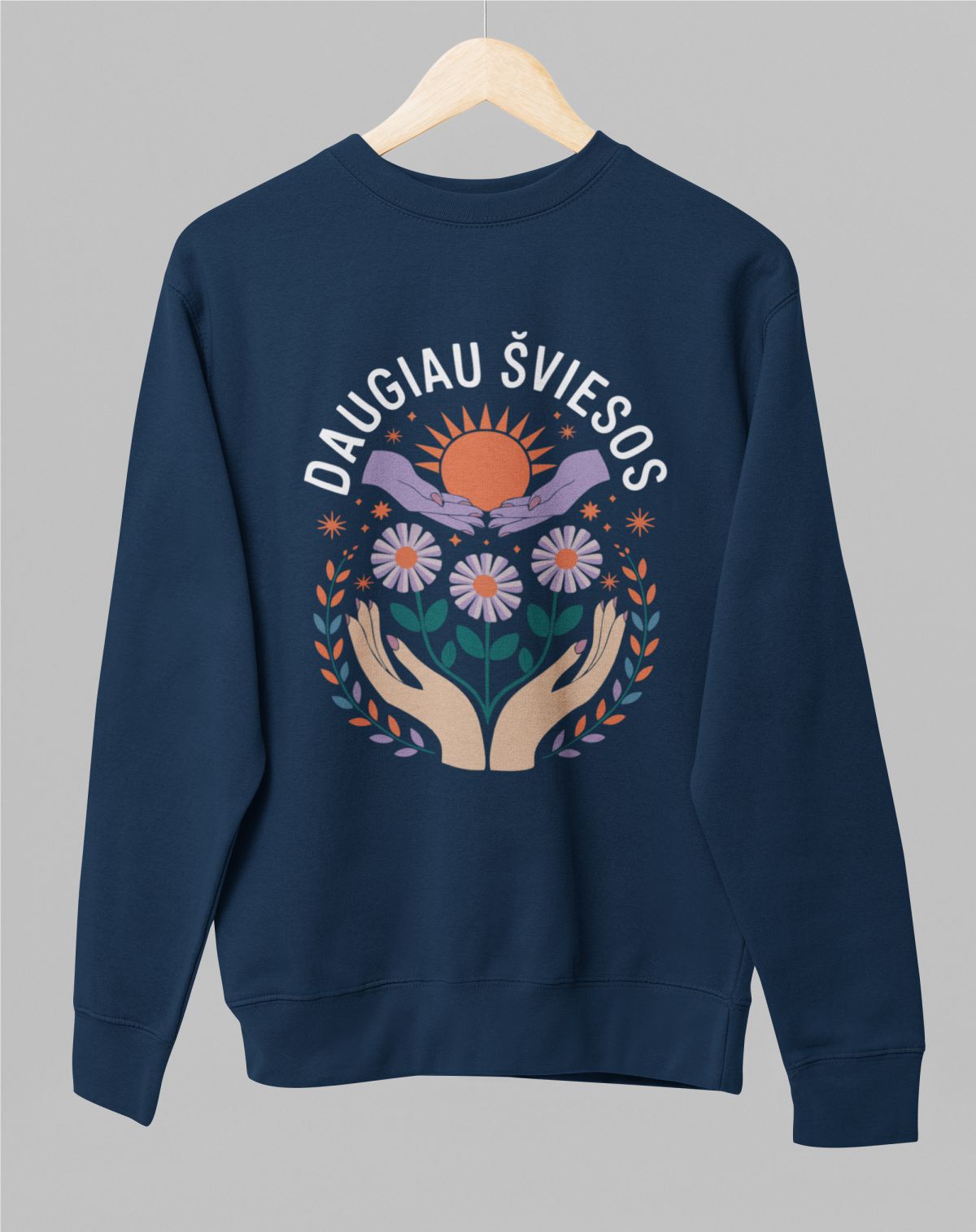 Mėlynas UNISEX džemperis be kapišono "Daugiau šviesos"