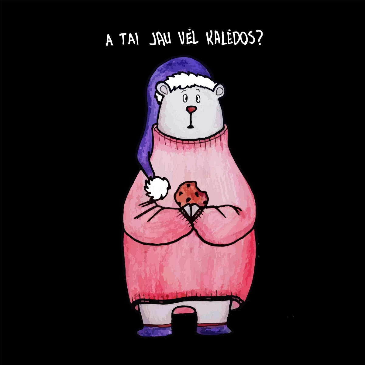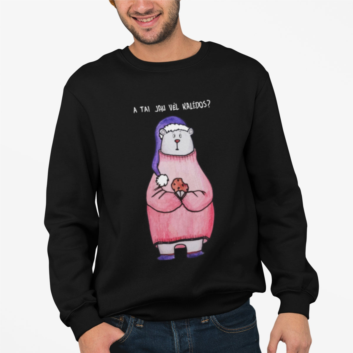 Juodas UNISEX džemperis be gobtuvo "A tai jau vėl kalėdos"
