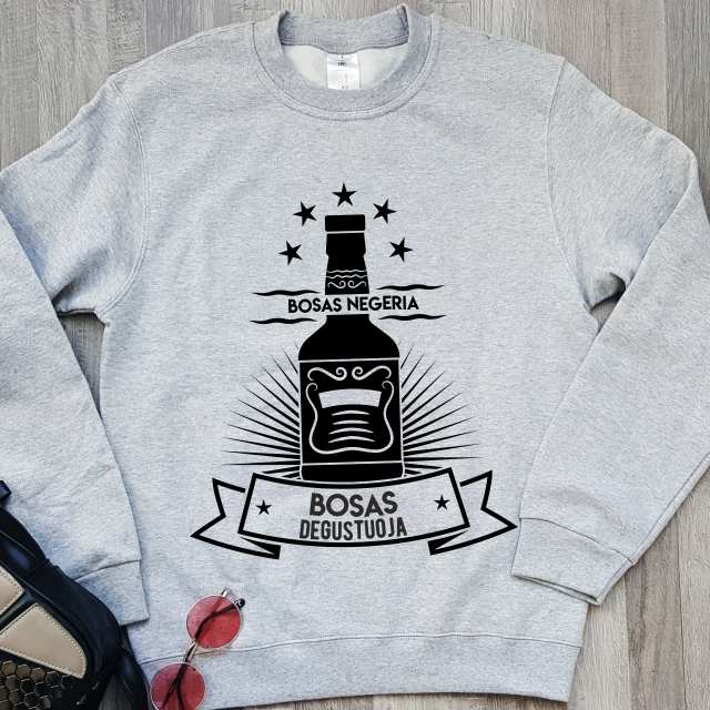 Pilkas džemperis be gobtuvo "Bosas negeria"