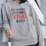 Pilkas džemperis be gobtuvo "Kai nutinka gyvenimas"