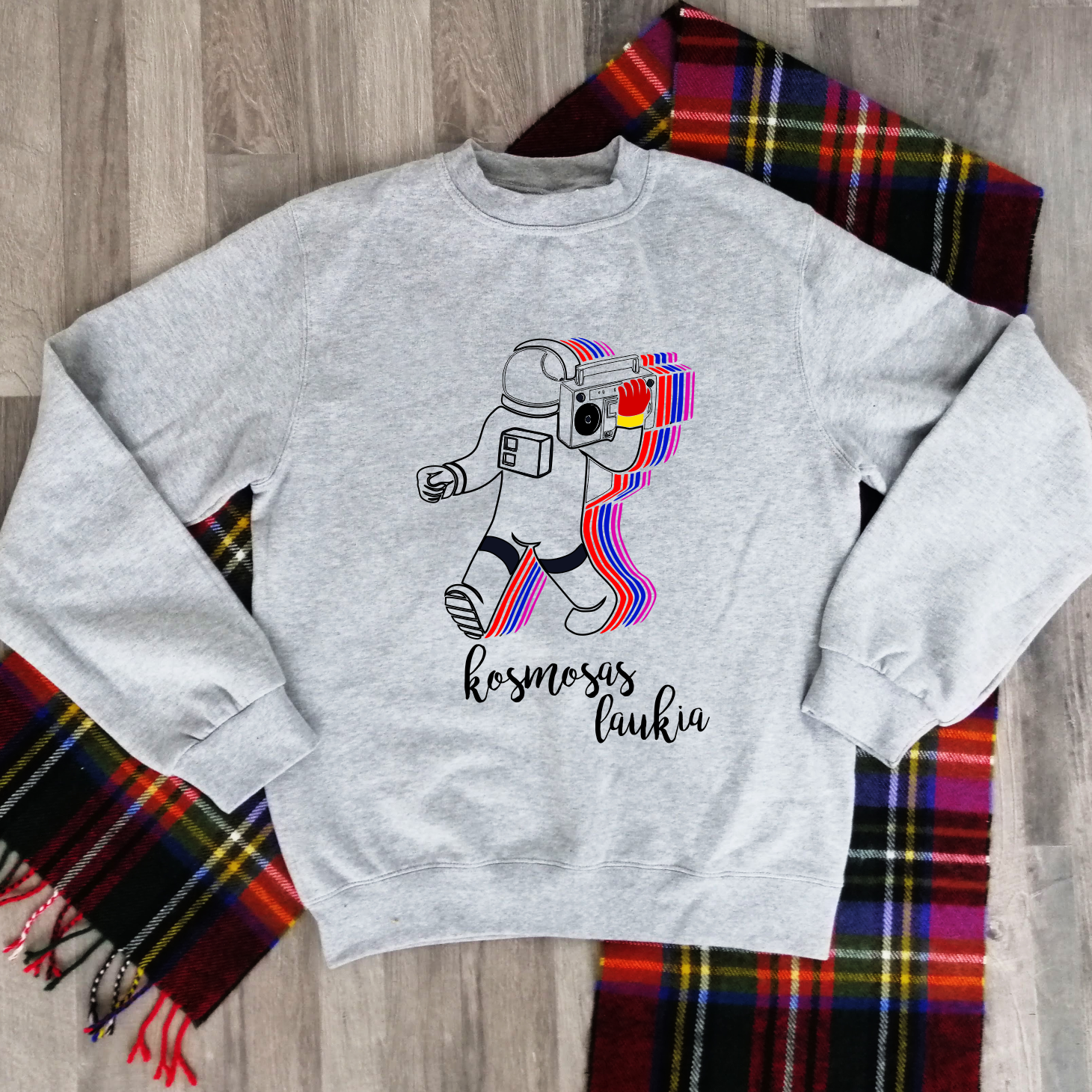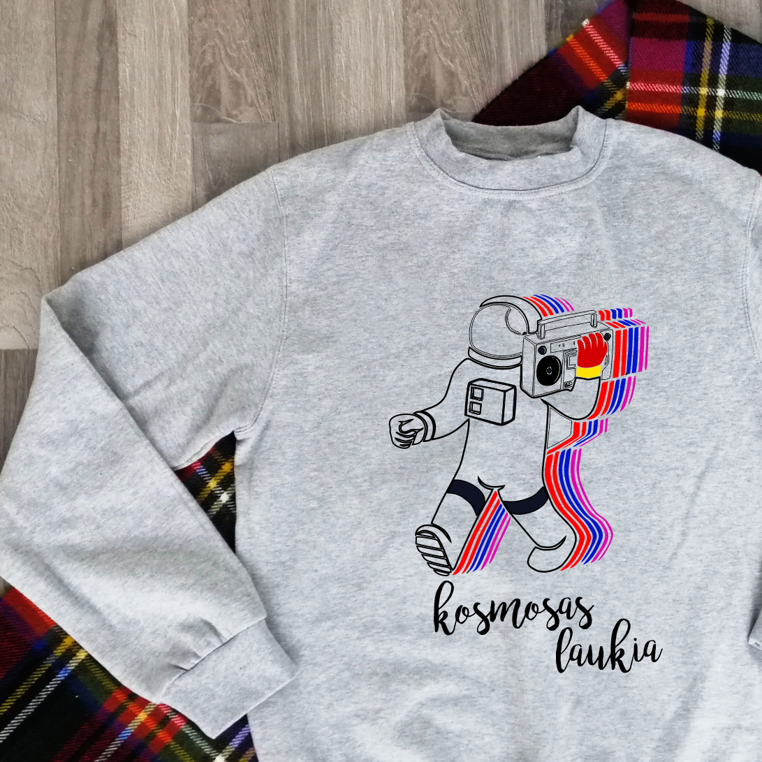Pilkas džemperis be gobtuvo "Kosmosas laukia"