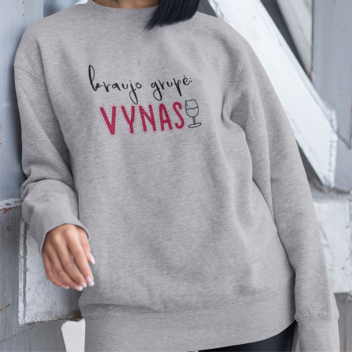 Pilkas džemperis be gobtuvo "Kraujo grupė vynas"