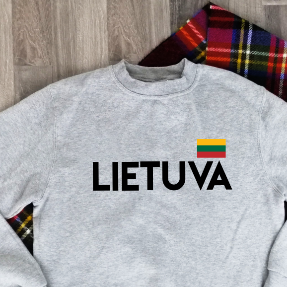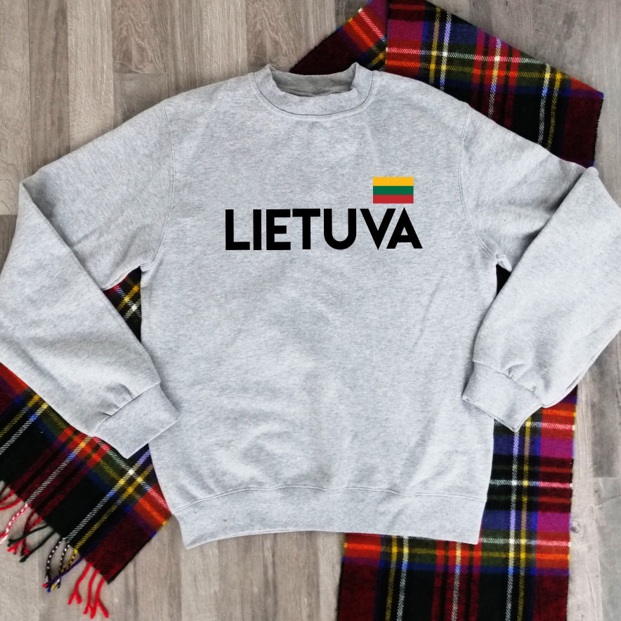 Pilkas džemperis be gobtuvo "Lietuva su maža trispalve" Pagaminta prekė (S, M dydis)