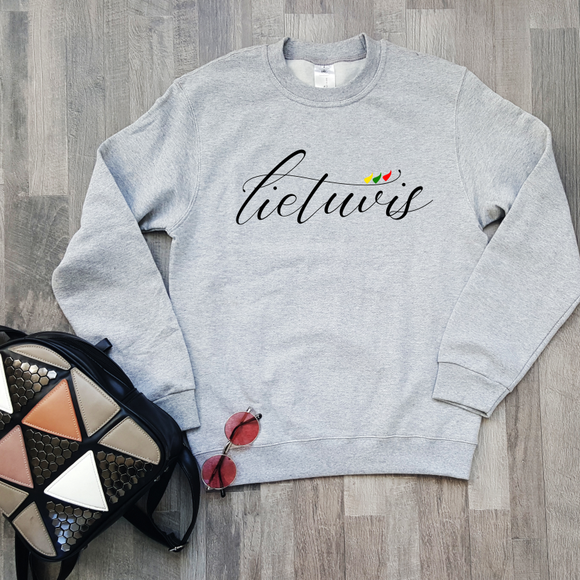 Pilkas džemperis be gobtuvo "Lietuvis naujas"