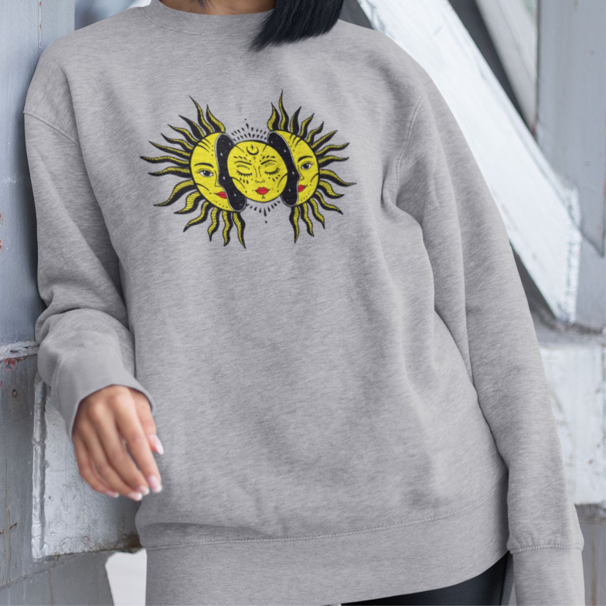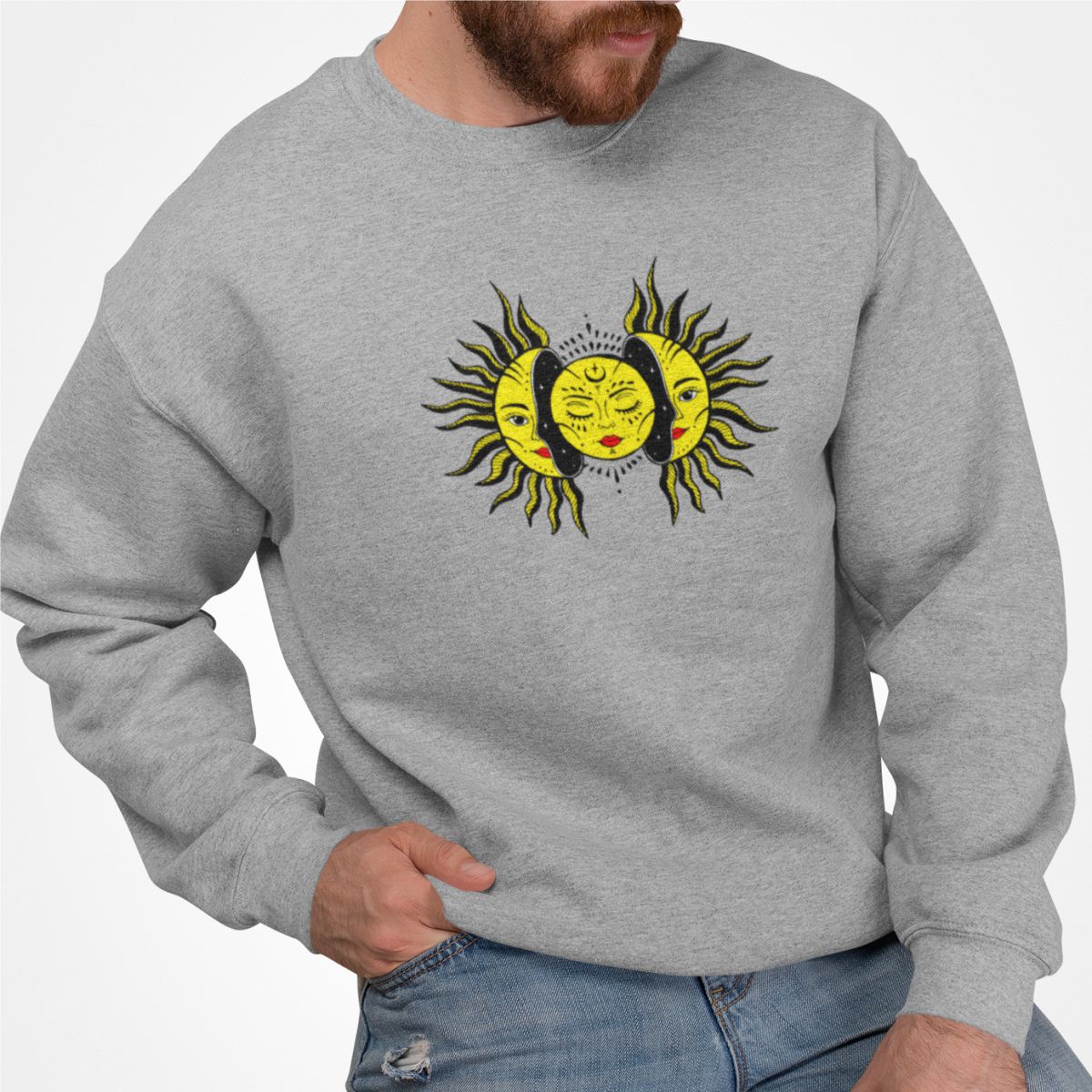 Pilkas džemperis be gobtuvo "Saulė"