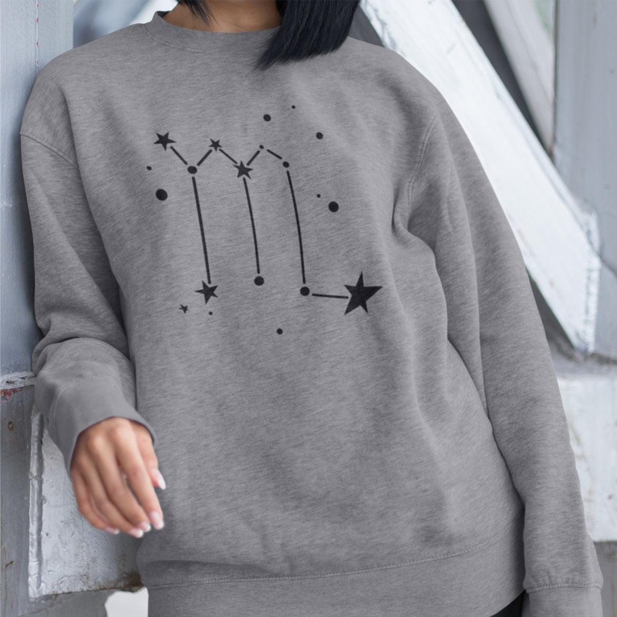 Pilkas džemperis be gobtuvo "Skorpionas zodiakas"