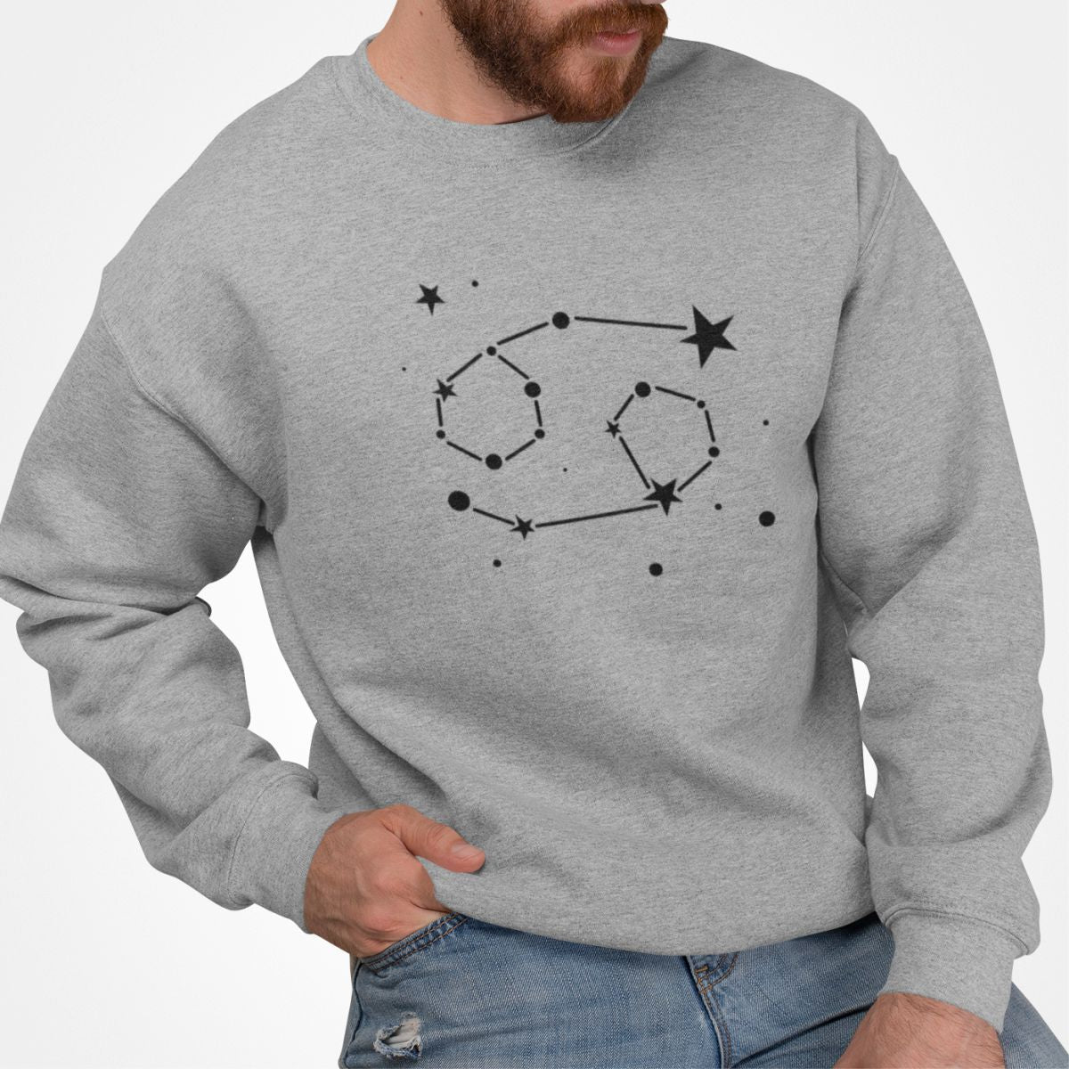 Pilkas džemperis be gobtuvo "Vėžys zodiakas"