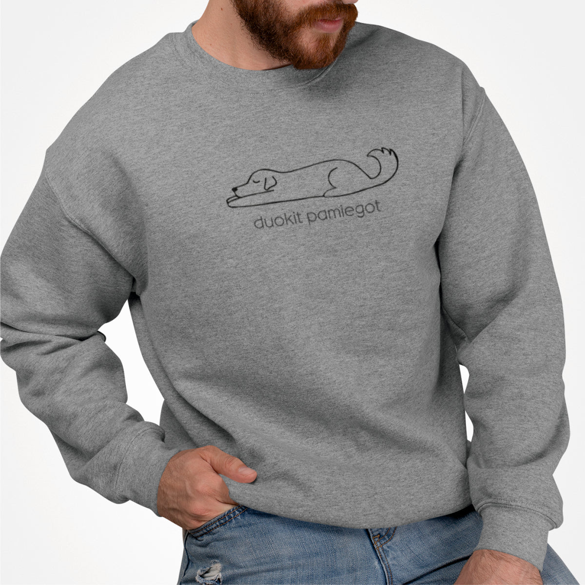 Pilkas melanžinis džemperis be gobtuvo "Duokit pamiegot"
