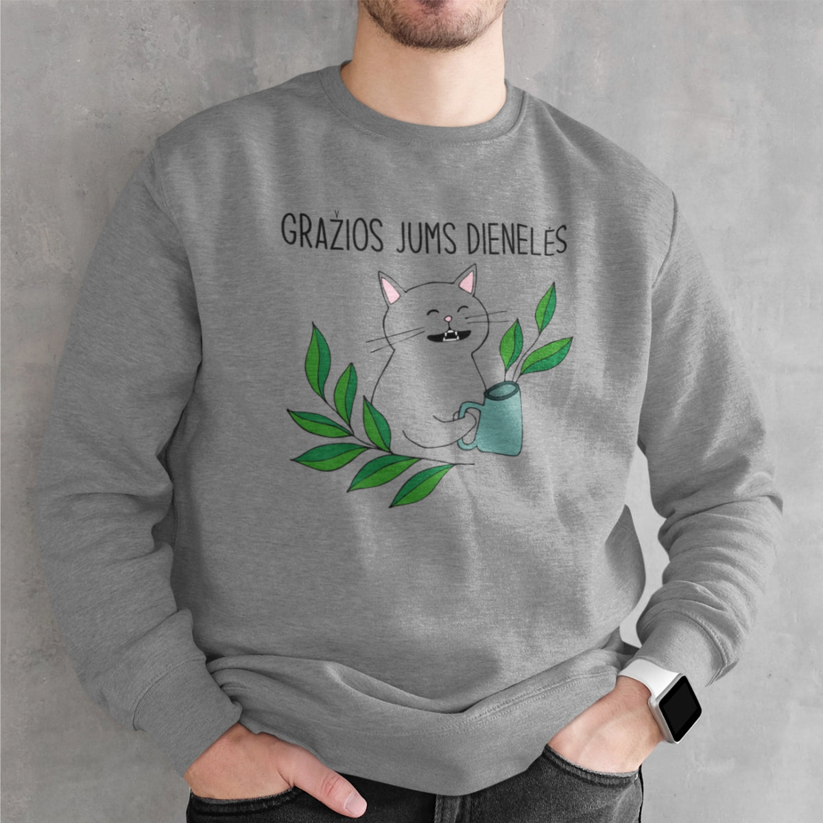 Pilkas melanžinis džemperis be gobtuvo "Gražios jums dienelės"
