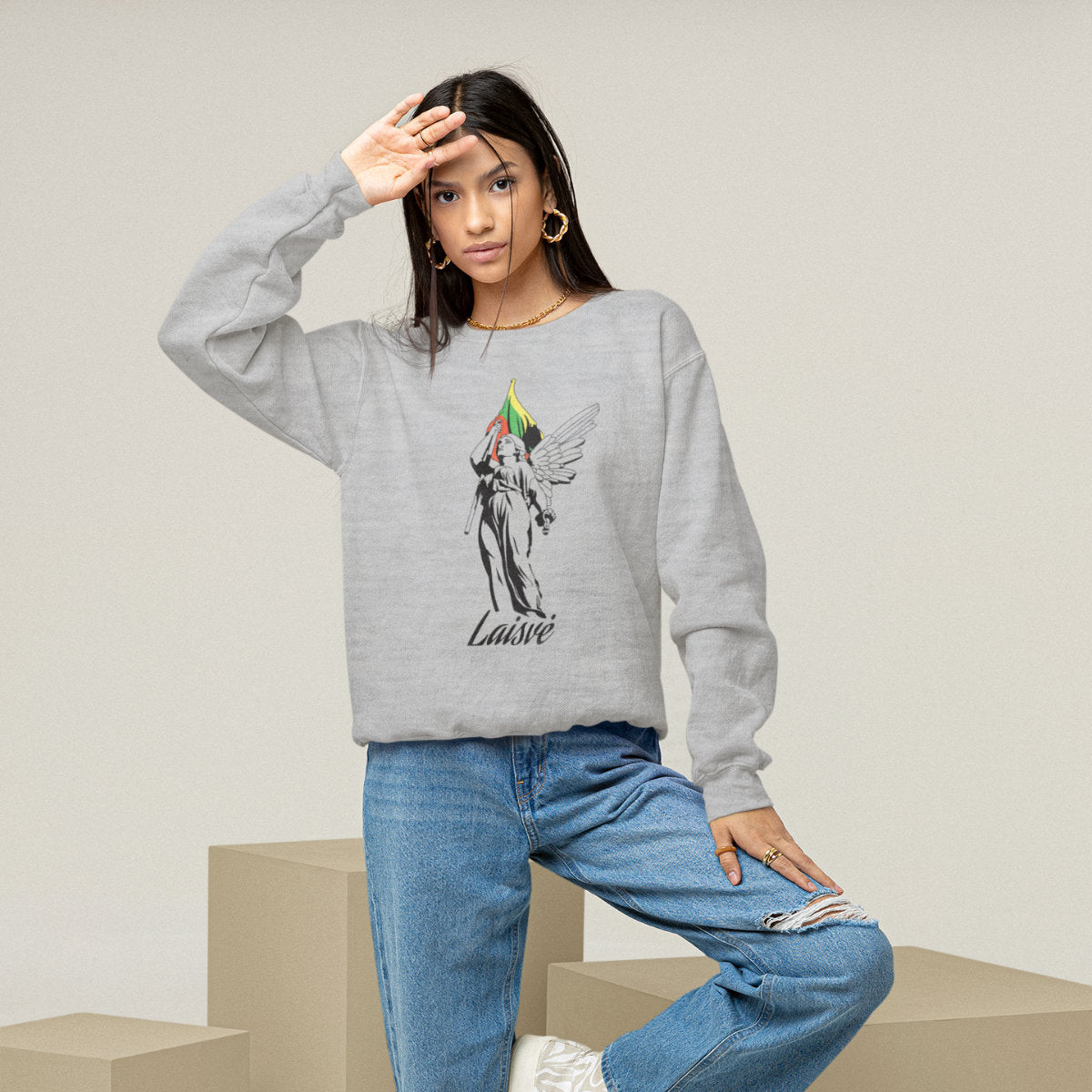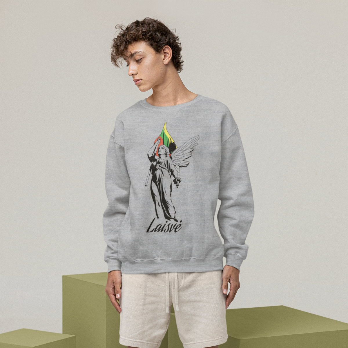 Pilkas melanžinis džemperis be gobtuvo "Laisvės statula"