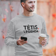 Pilkas melanžinis džemperis be gobtuvo su užrašu "Tėtis legenda"