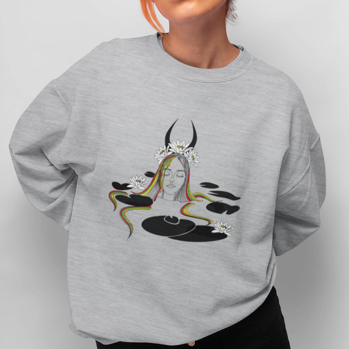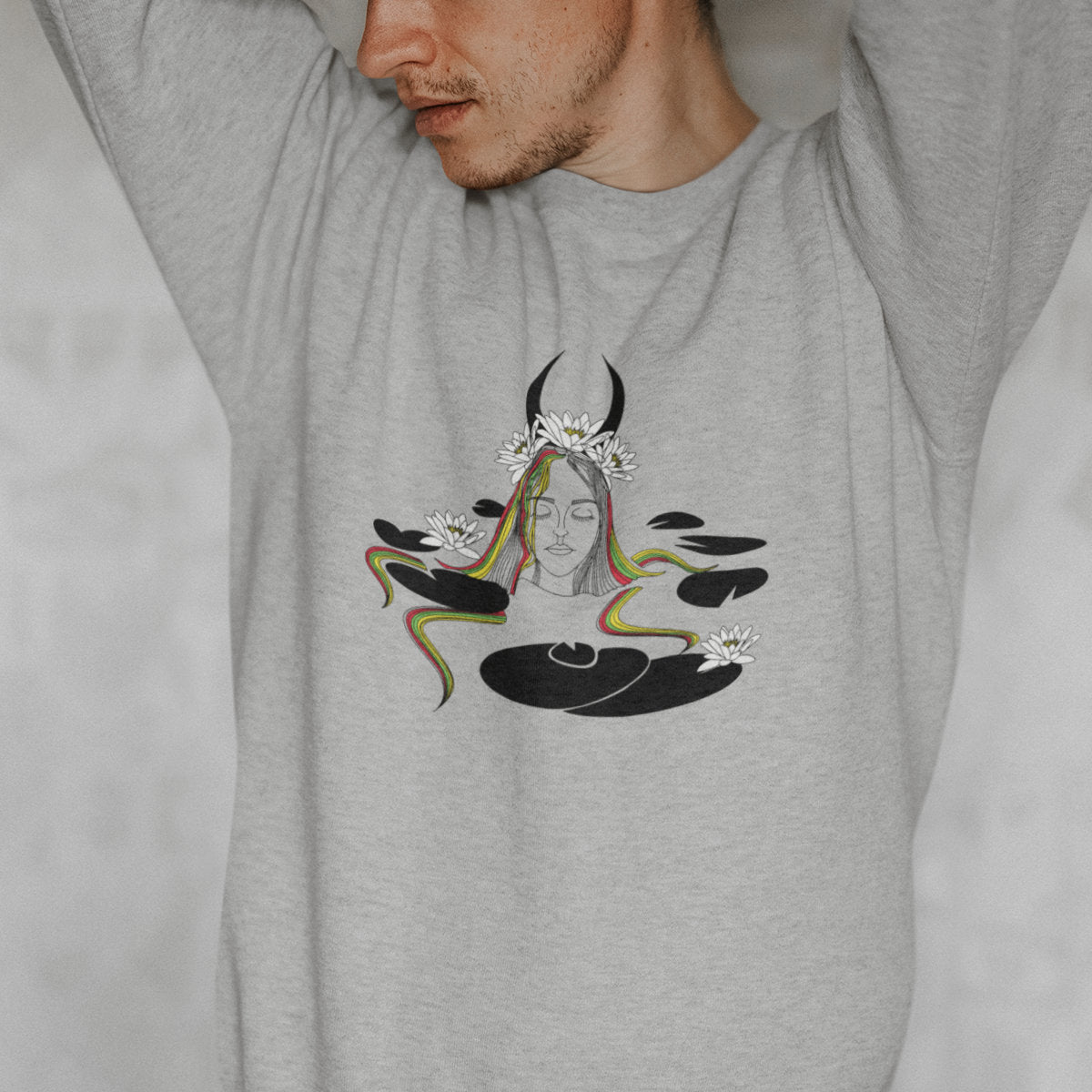 Pilkas melanžinis džemperis be gobtuvo "Velnio nuotaka"