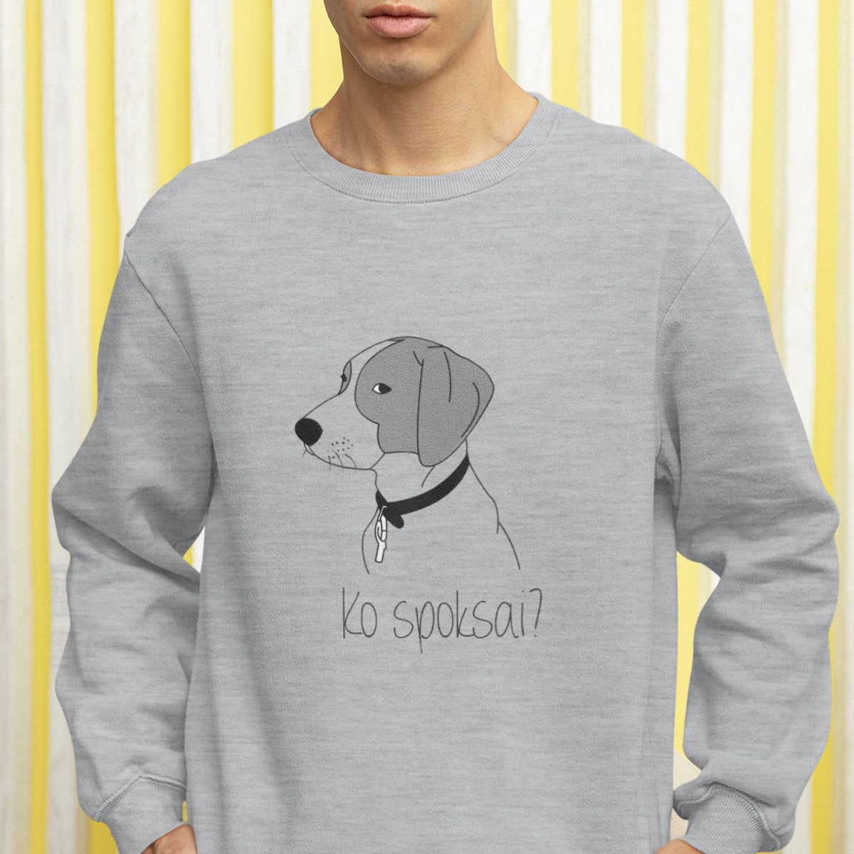 Pilkas melanžinis UNISEX džemperis be gobtuvo "Ko spoksai?"