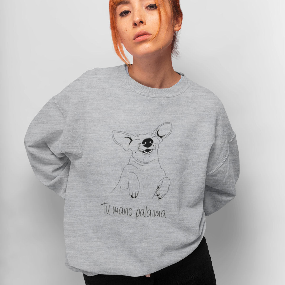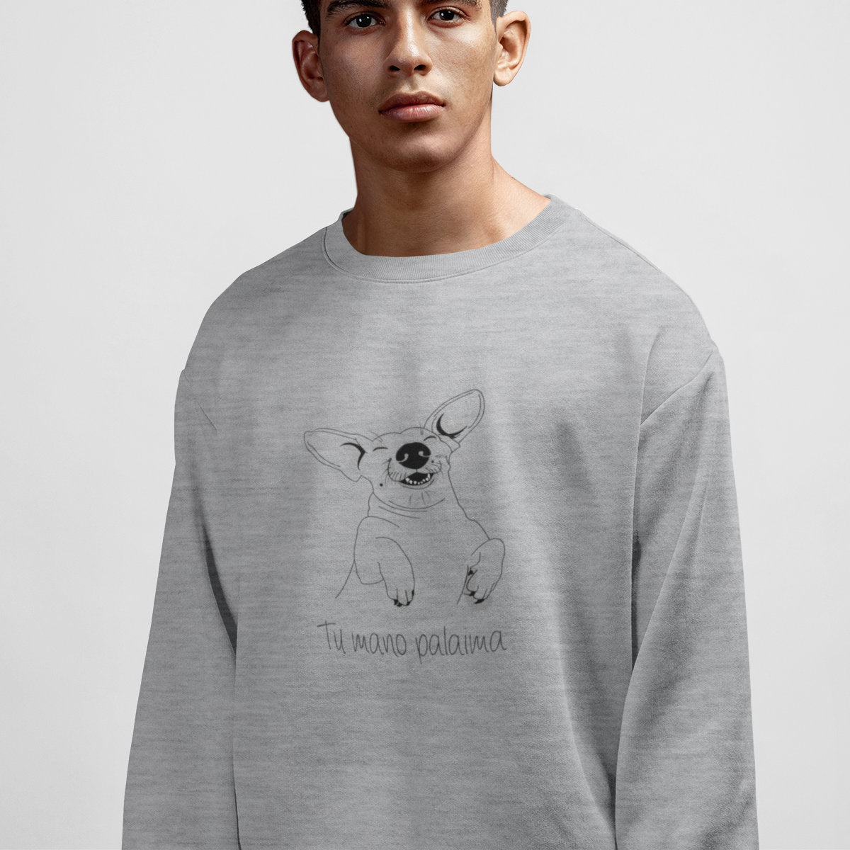 Pilkas melanžinis UNISEX džemperis be gobtuvo "Palaima"
