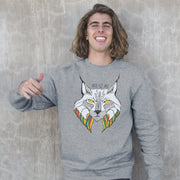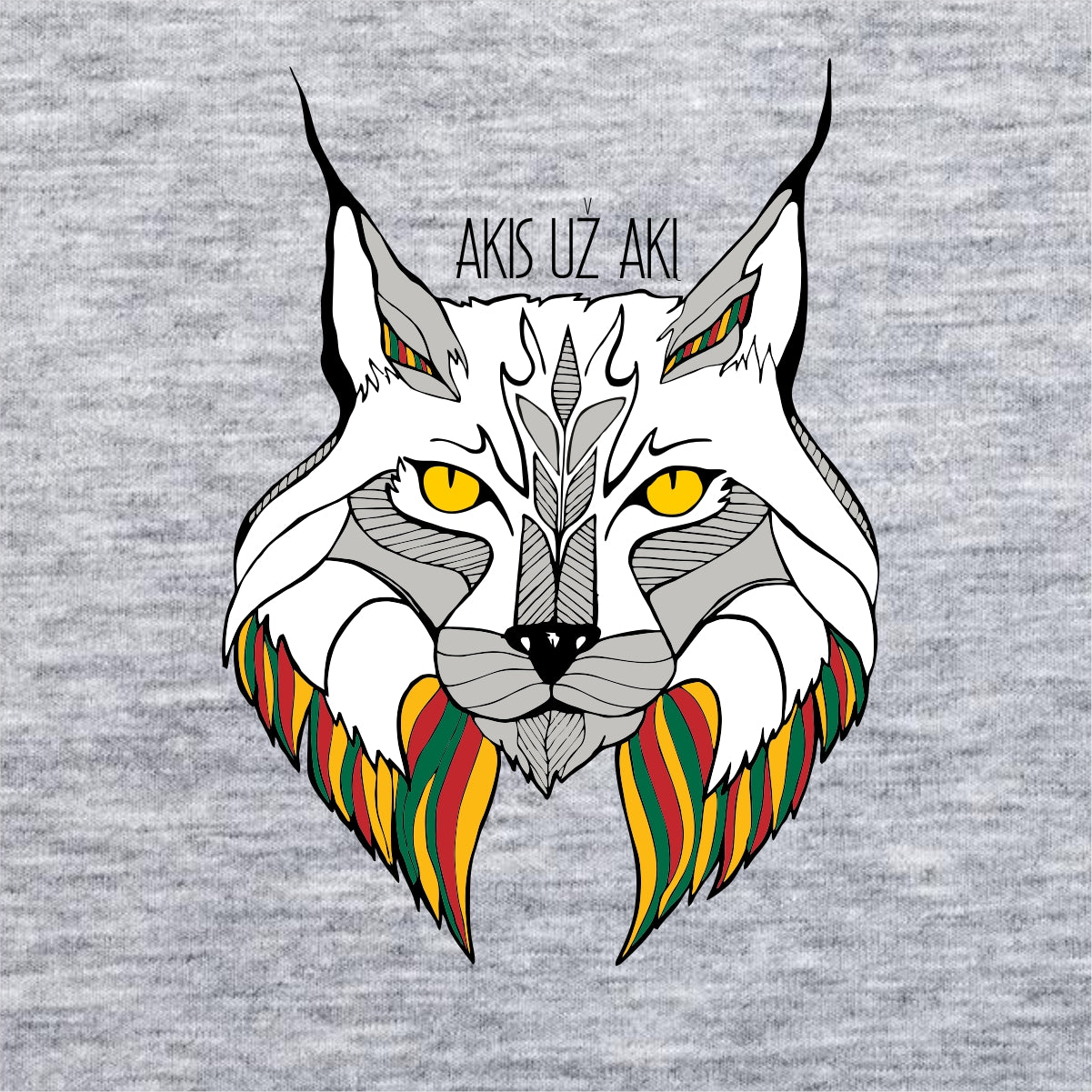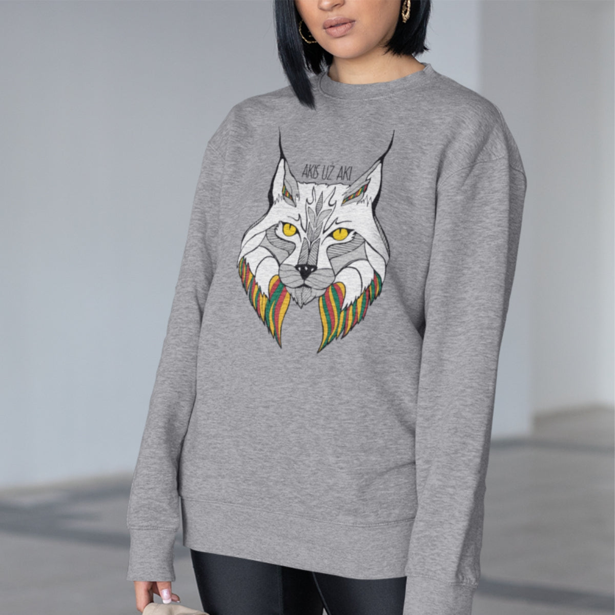 Pilkas melanžinis UNISEX džemperis be gobtuvo "Spalvota lūšis"