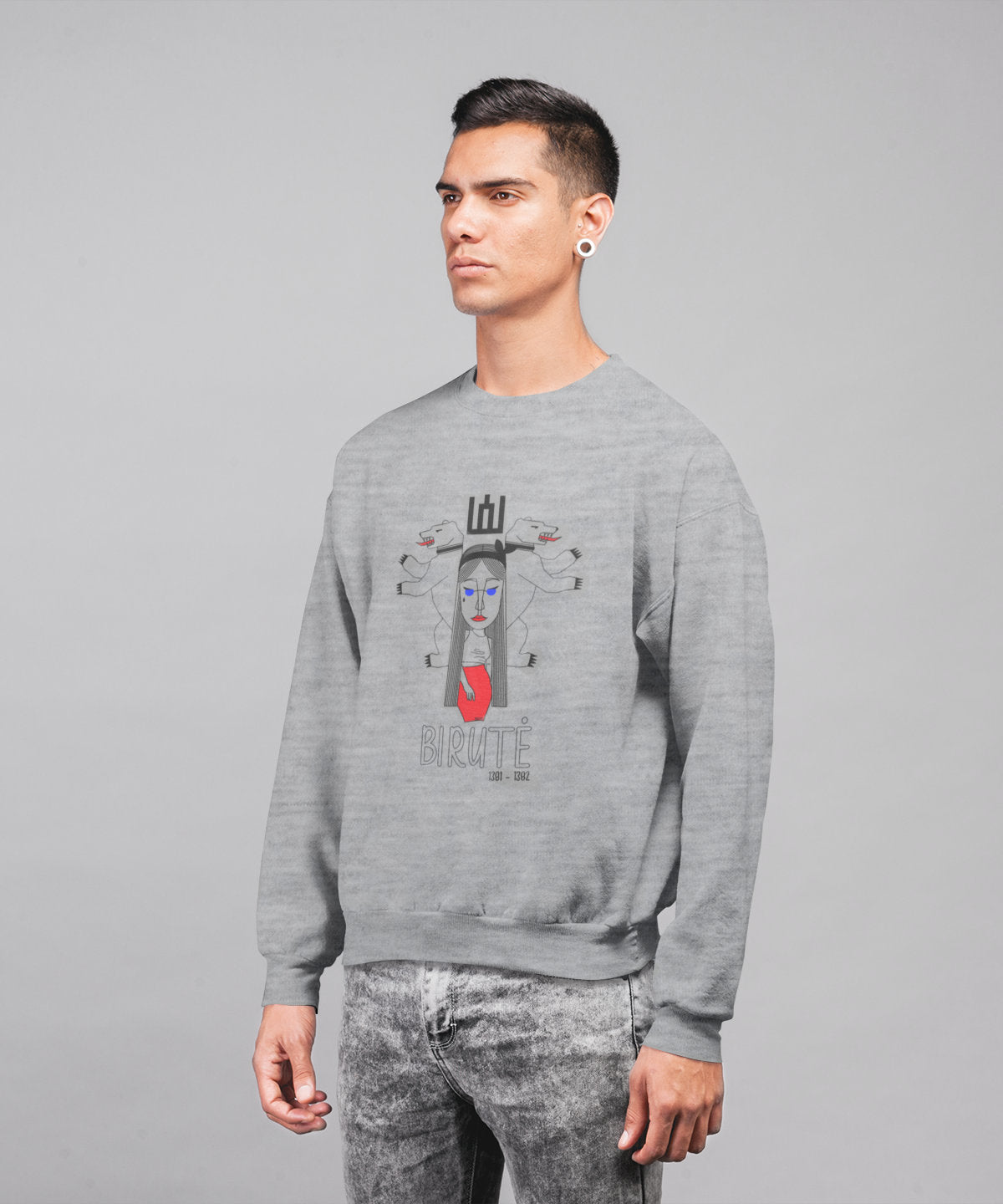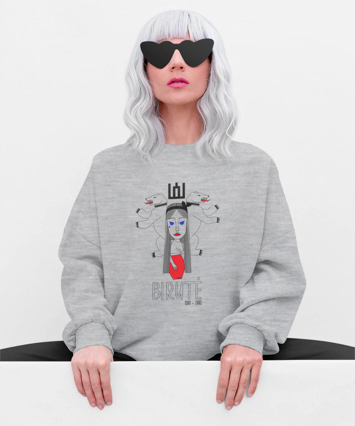 Pilkas melanžinis UNISEX džemperis "LDK KUNIGAIKŠTIENĖ BIRUTĖ SU UŽRAŠU"