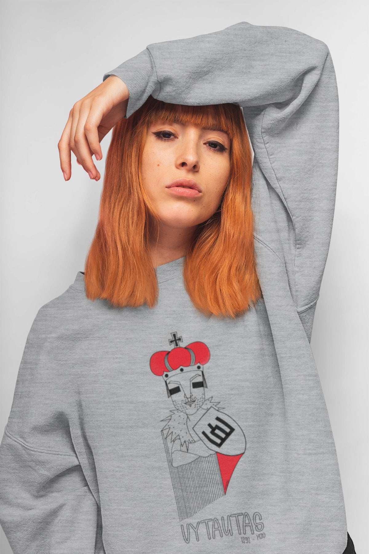 Pilkas melanžinis UNISEX džemperis "LDK KUNIGAIKŠTIS VYTAUTAS SU UŽRAŠU"