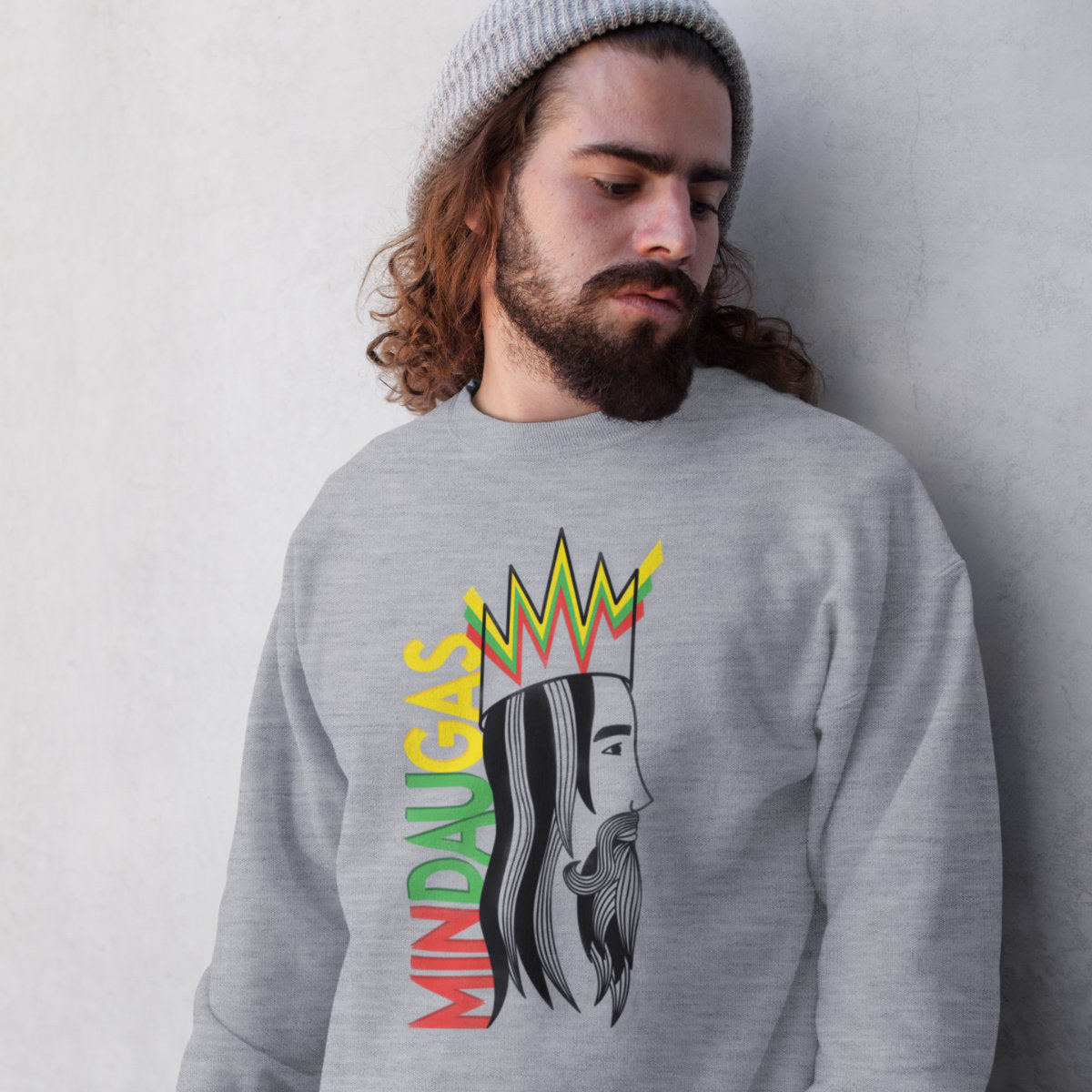 Pilkas melanžinis UNISEX džemperis "Mindaugo profilis"