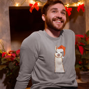 Pilkas melanžinis UNISEX kalėdinis džemperis be gobtuvo "La la lama"