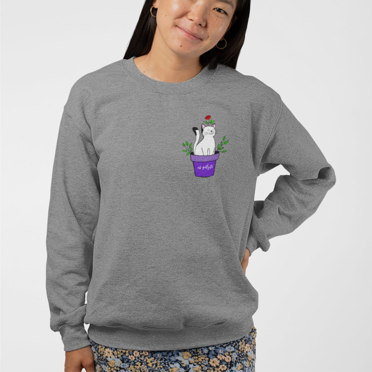 Pilkas UNISEX džemperis be gobtuvo "Aš gėlytė"