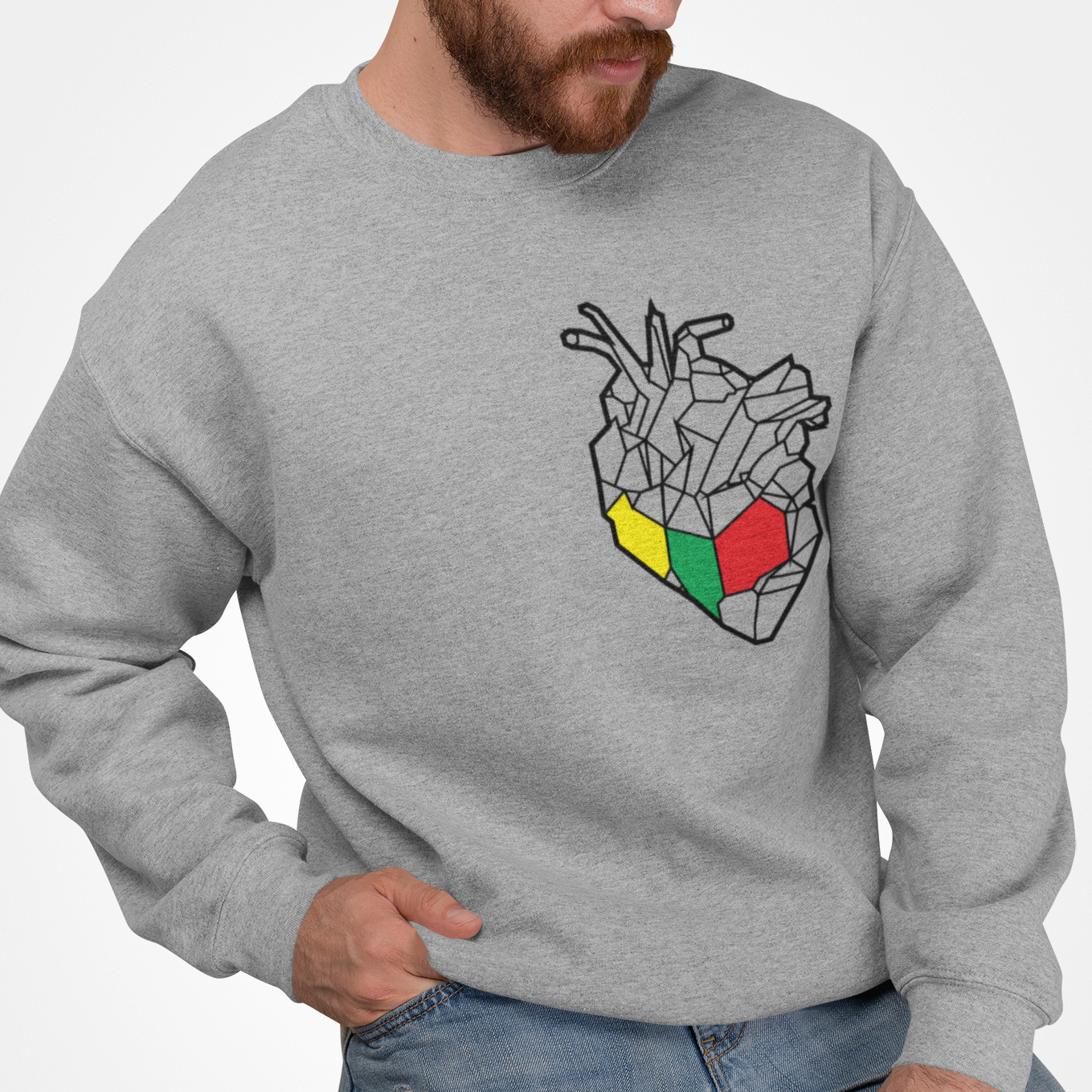 Pilkas UNISEX džemperis be gobtuvo "Geometrinė širdis"