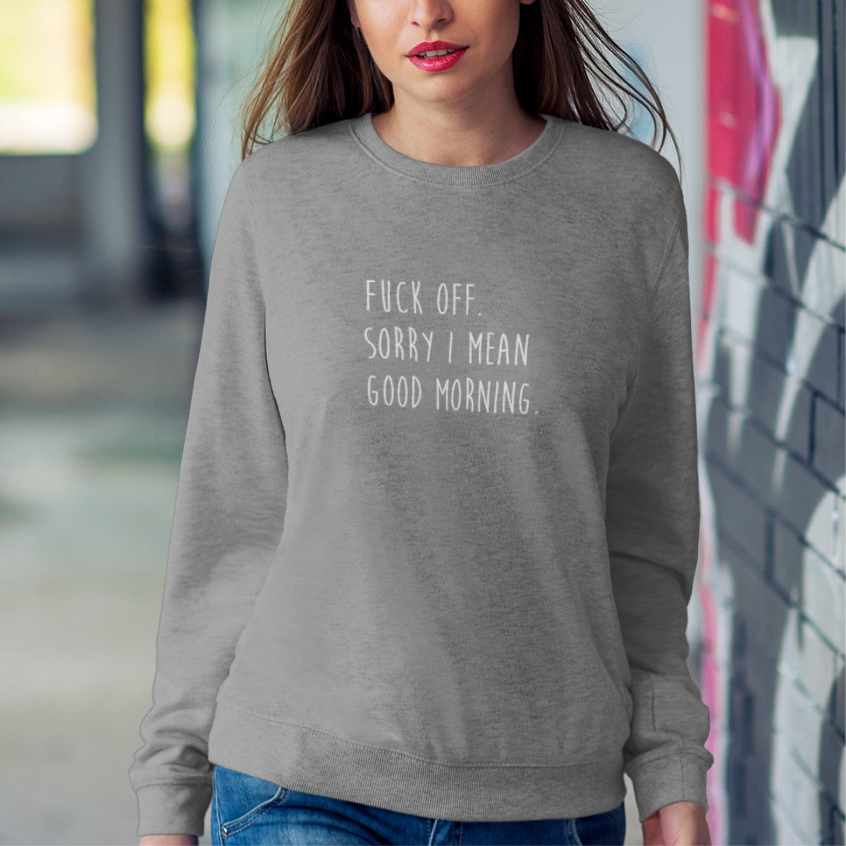 Pilkas UNISEX džemperis be gobtuvo "Good morning"