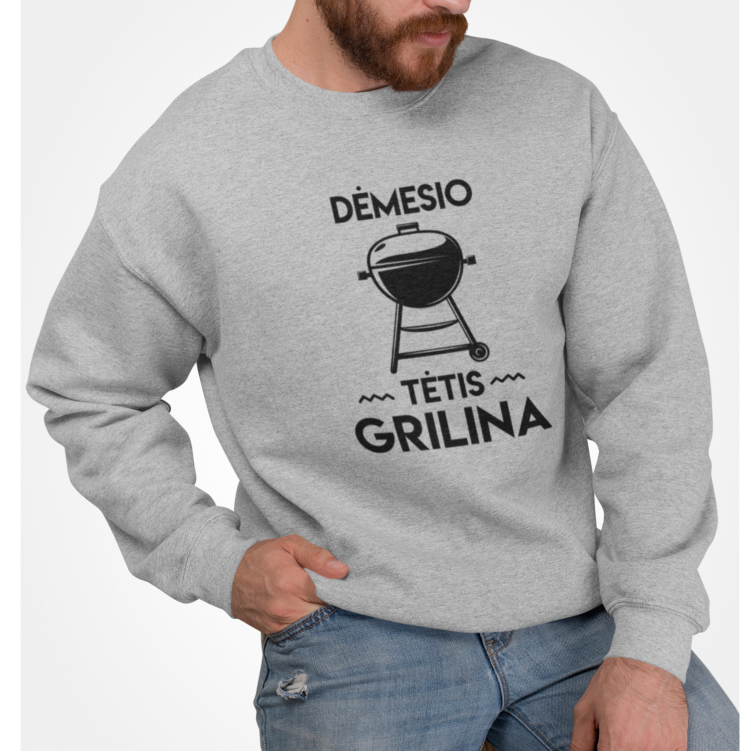 Pilkas UNISEX džemperis be gobtuvo "Tėtis grilina"