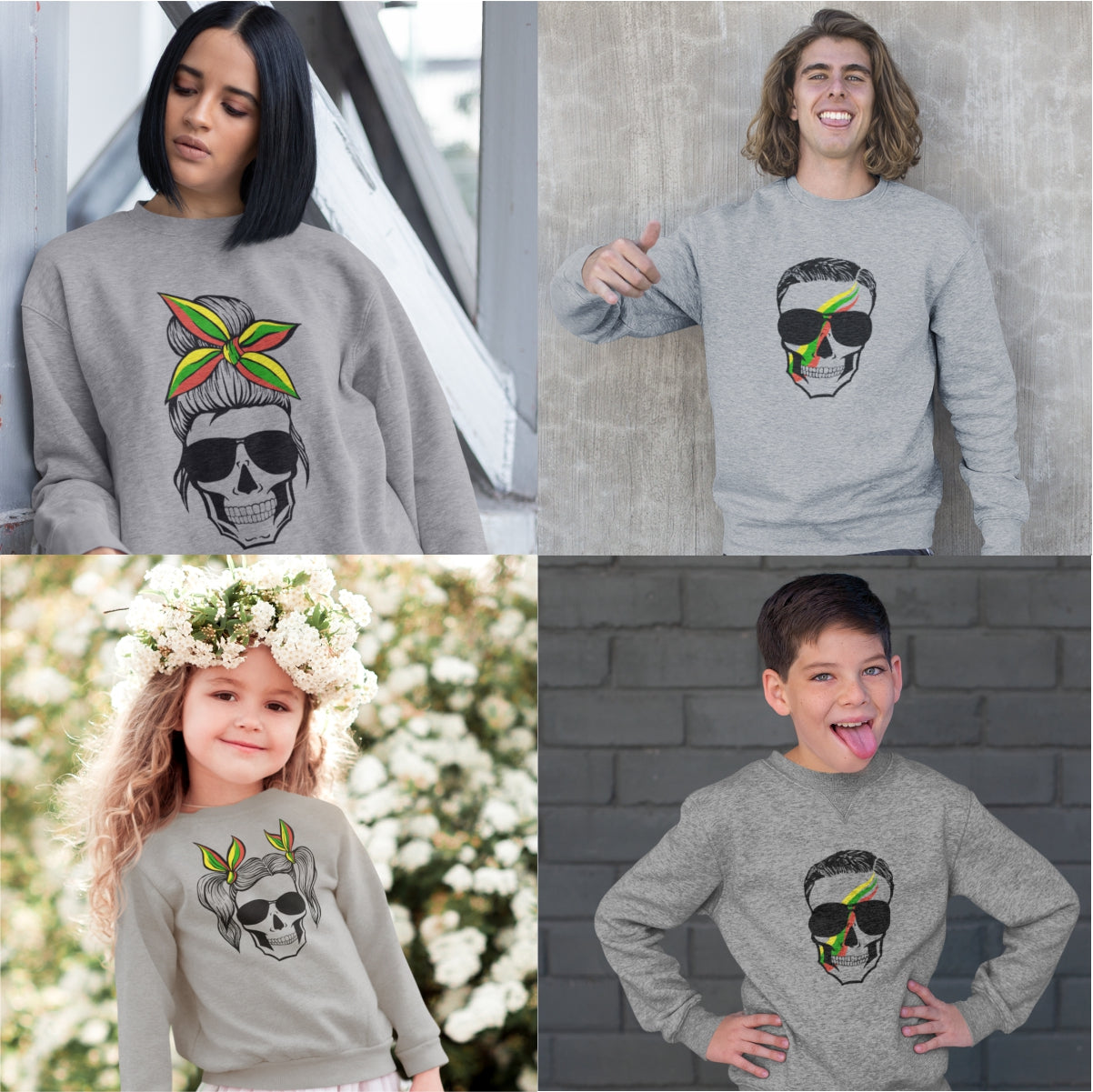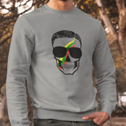 Pilkas UNISEX džemperis be gobtuvo "Vyriška kaukolė" Pagaminta prekė (M dydis)