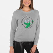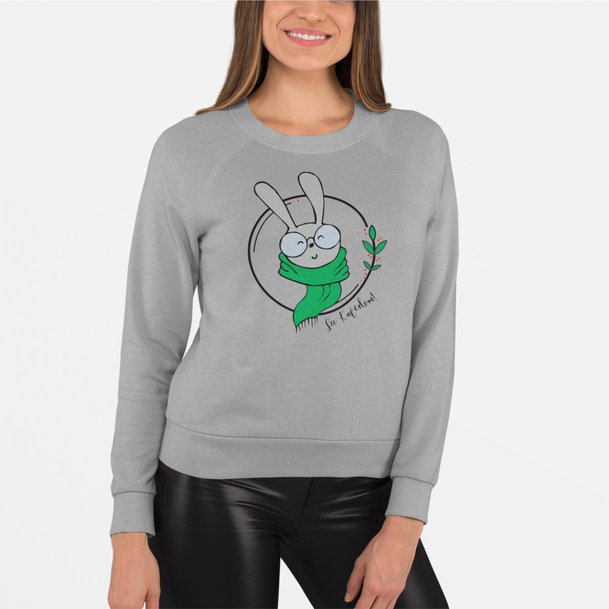 Pilkas UNISEX kalėdinis džemperis be gobtuvo "Zuikis su žaliu šaliku"