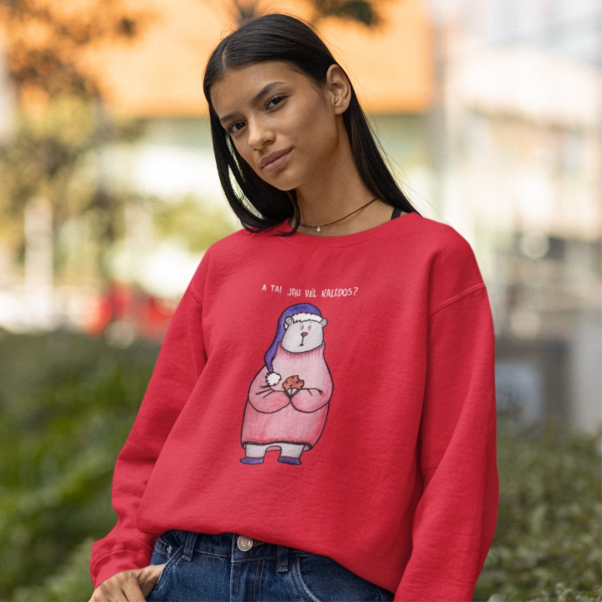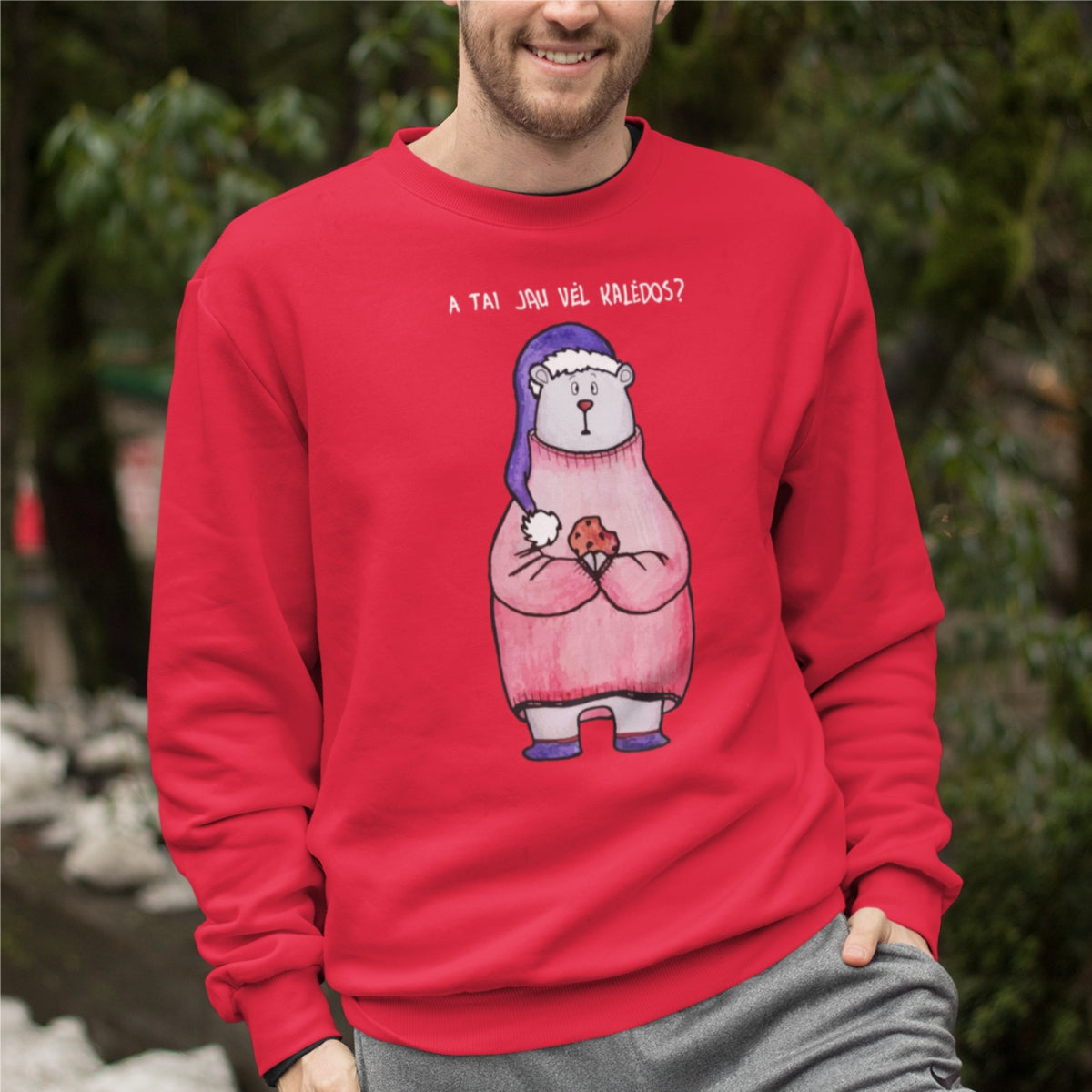 Raudonas UNISEX džemperis be gobtuvo "A tai jau vėl kalėdos"