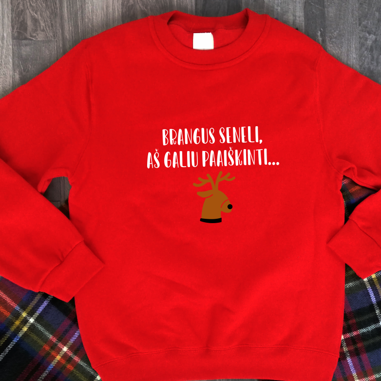 Raudonas džemperis be gobtuvo "Brangus seneli"