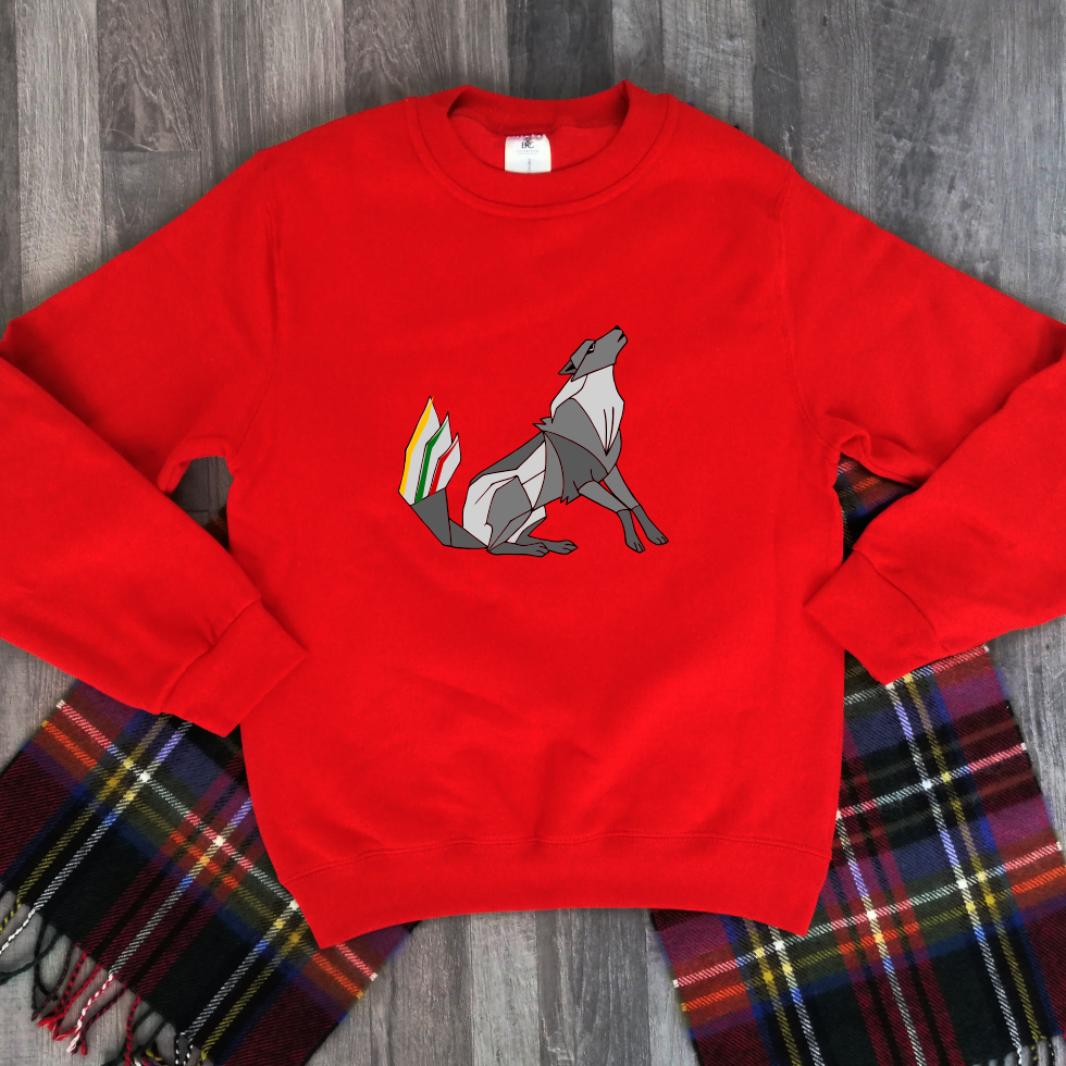 Raudonas džemperis be gobtuvo "Geležinis vilkas su trispalve"