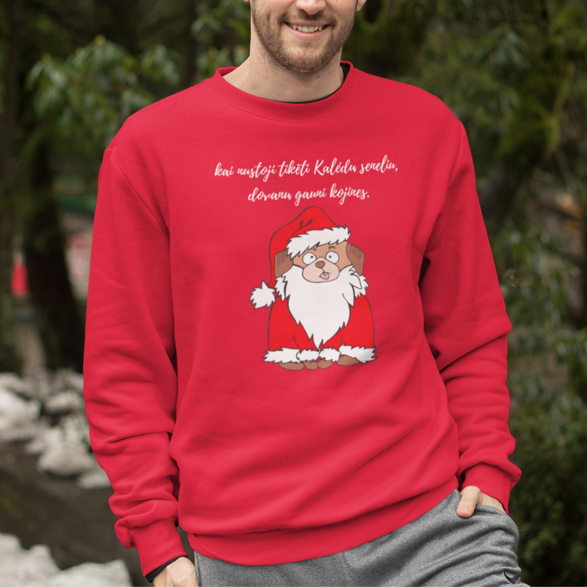 Raudonas UNISEX džemperis be gobtuvo "Kai nustoji tikėt Kalėdų seneliu"