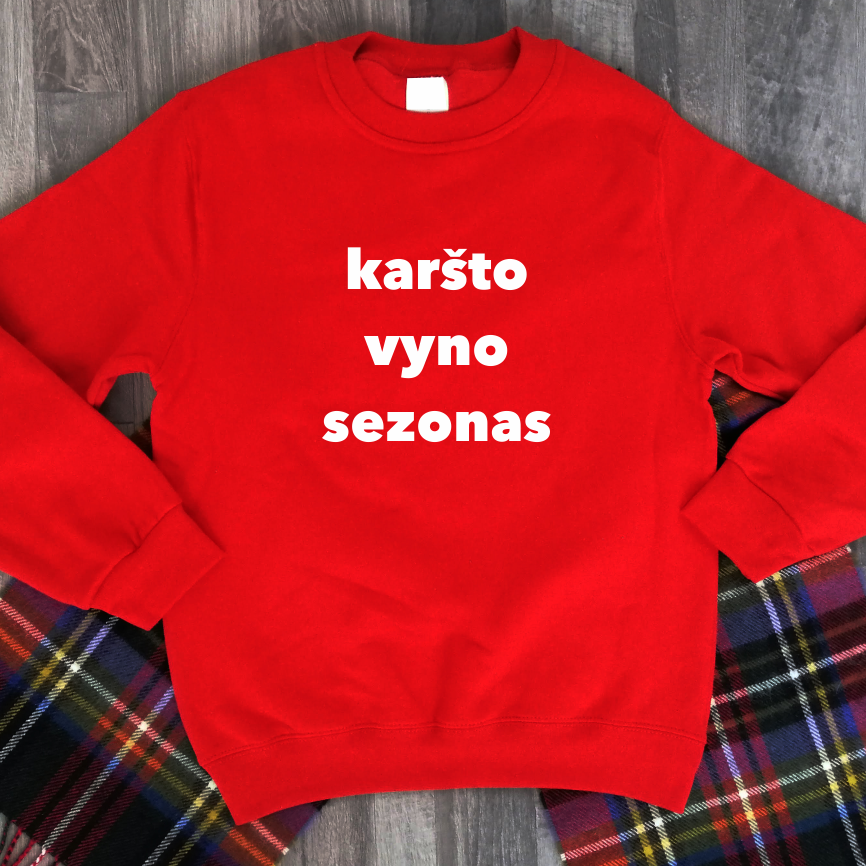 Raudonas džemperis be gobtuvo "Karšto vyno sezonas"