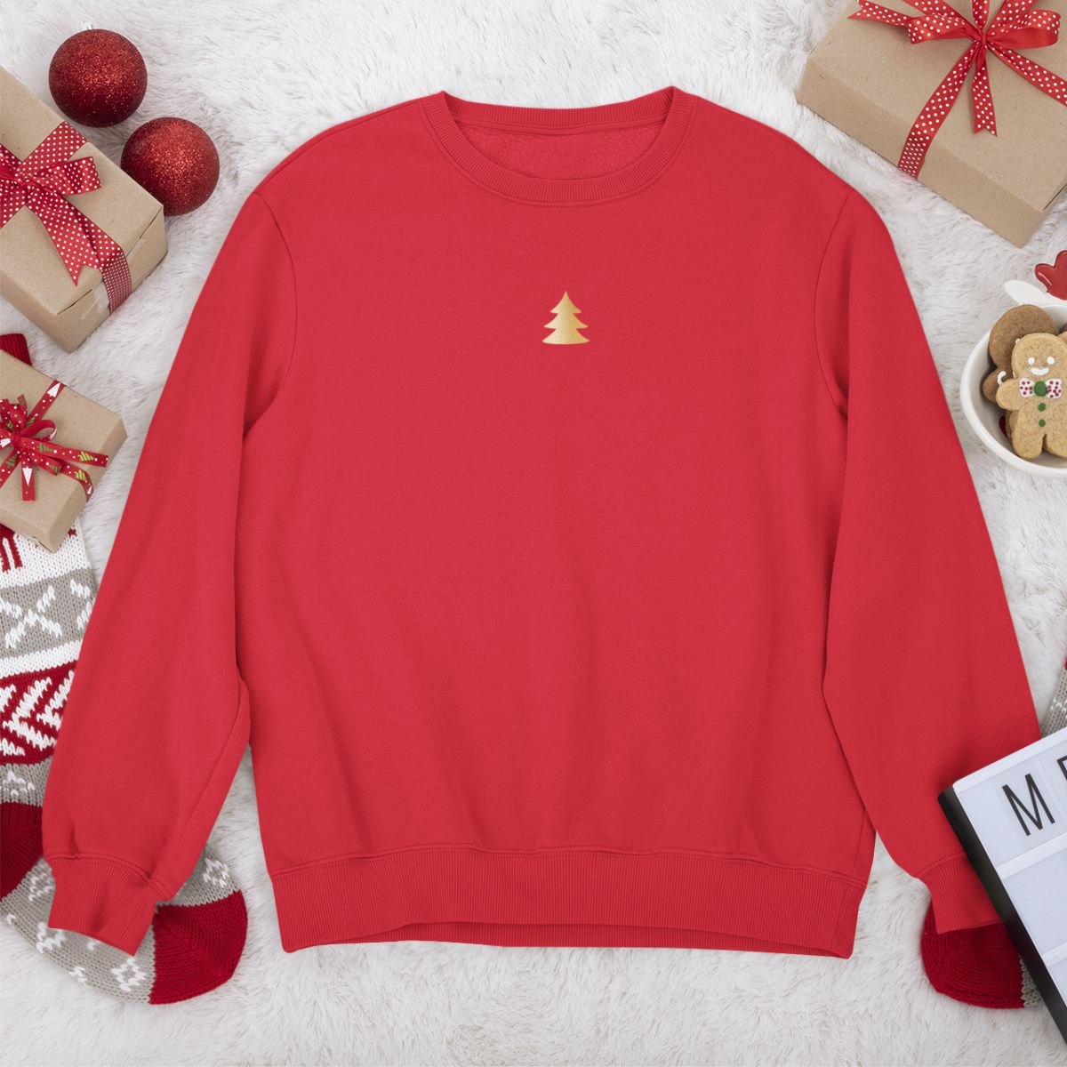 Raudonas kalėdinis UNISEX džemperis "Auksinė eglutė"