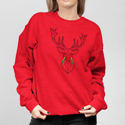 Raudonas UNISEX džemperis be gobtuvo "Geometrinis elnias"