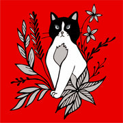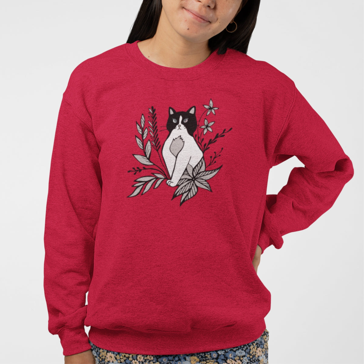 Raudonas UNISEX džemperis be gobtuvo "Murka tarp gėlių"