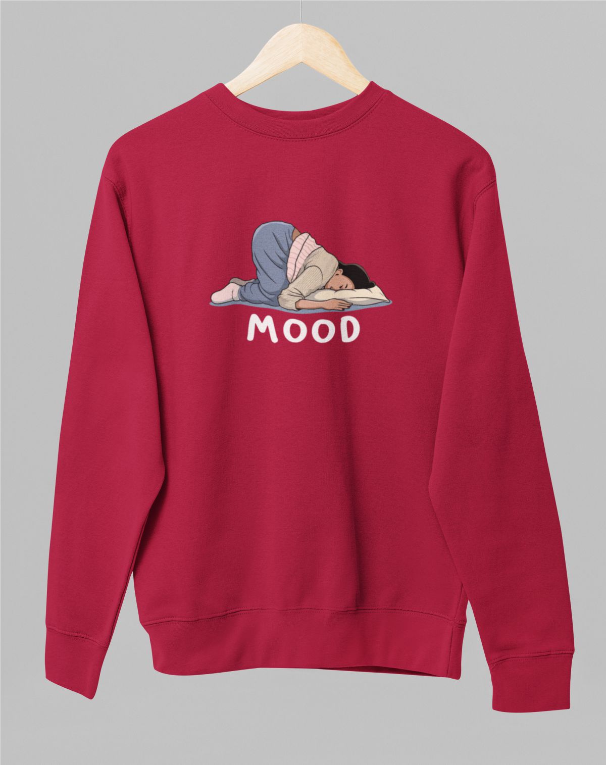 Raudonas UNISEX džemperis be kapišono "Veidu į pagalvę"