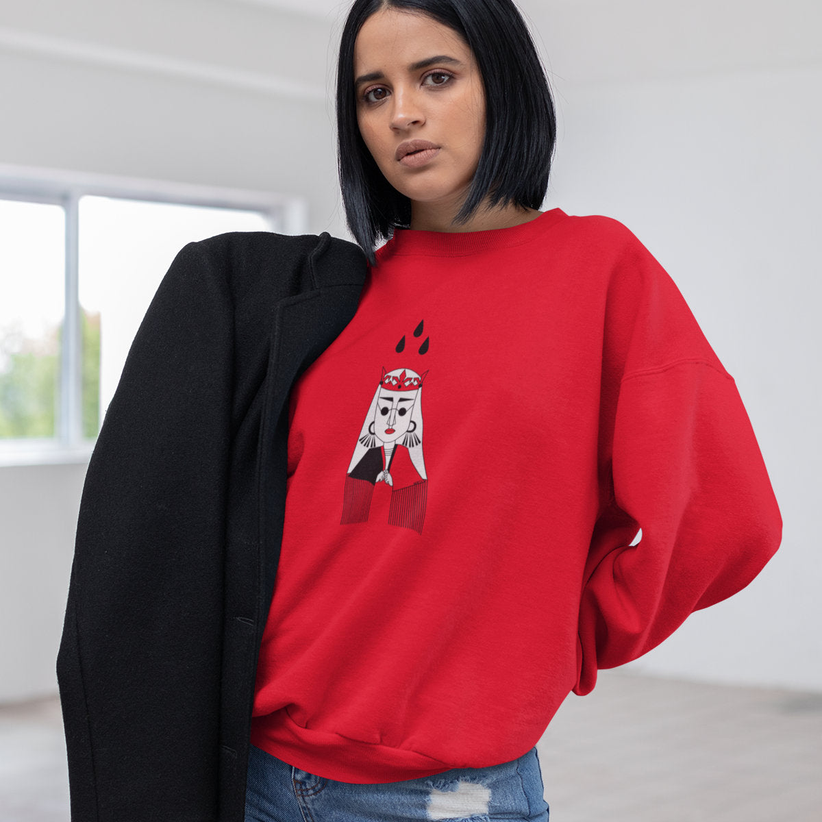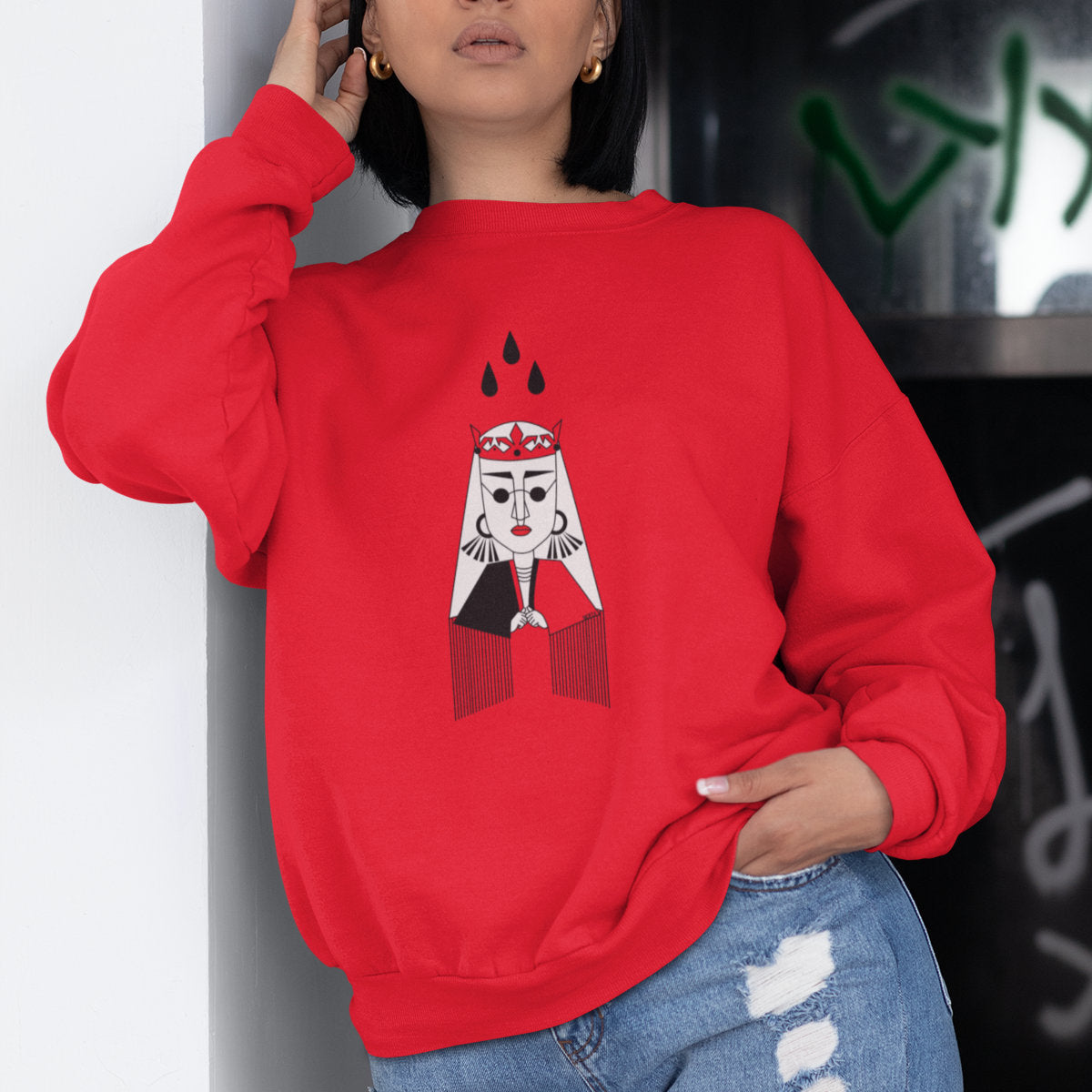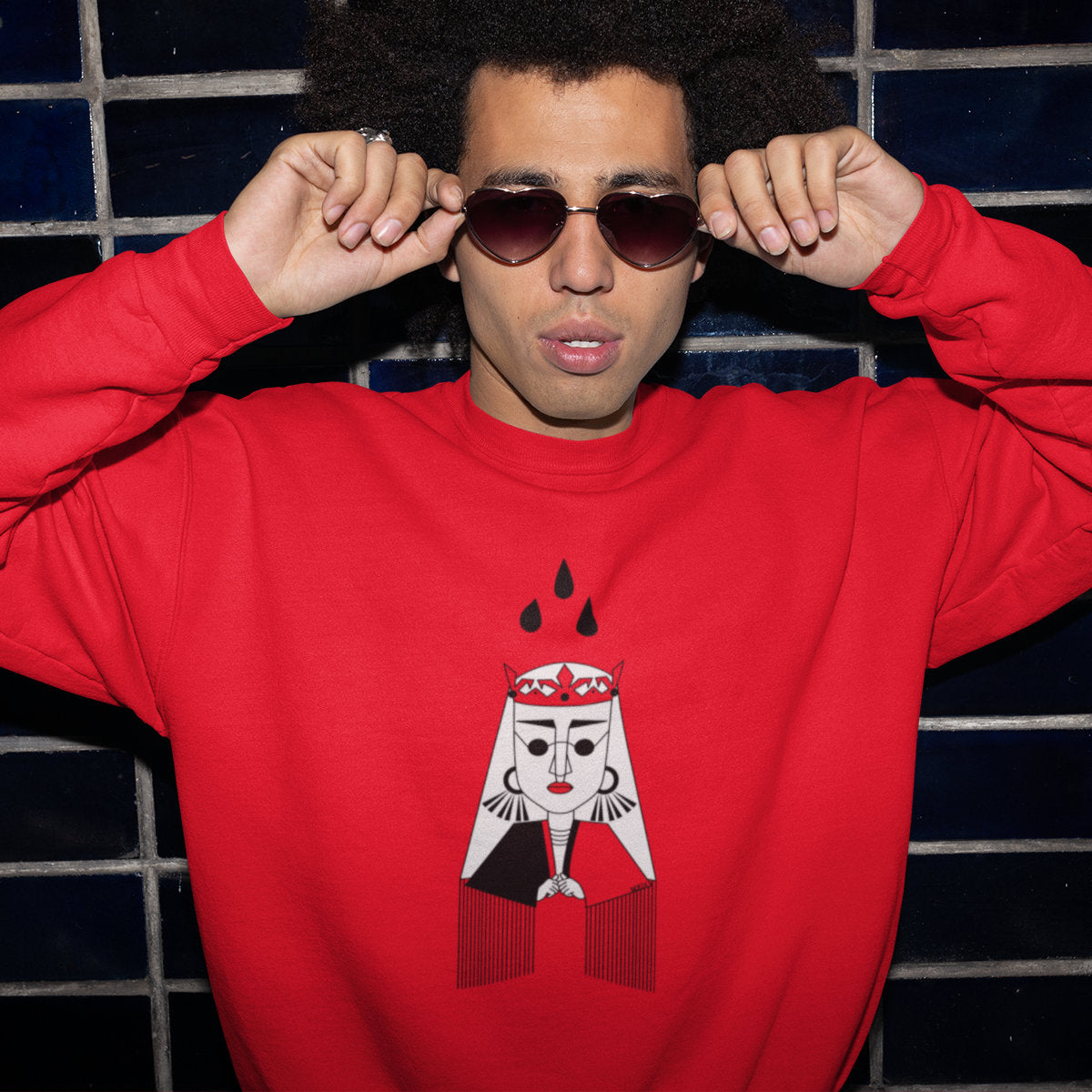 Raudonas UNISEX džemperis "KARALIENĖ MORTA"