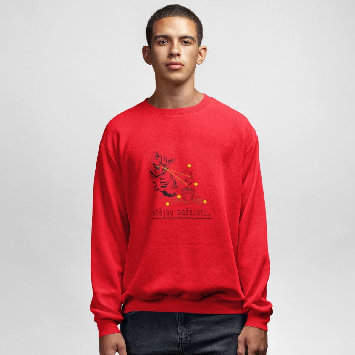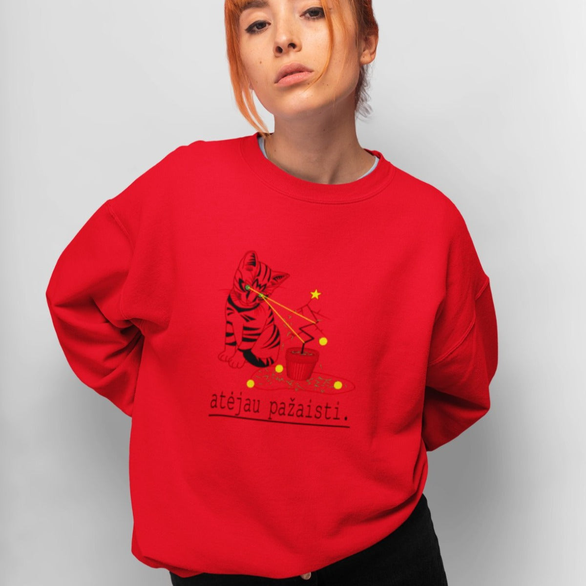 Raudonas UNISEX kalėdinis džemperis be gobtuvo "Atėjau pažaisti"
