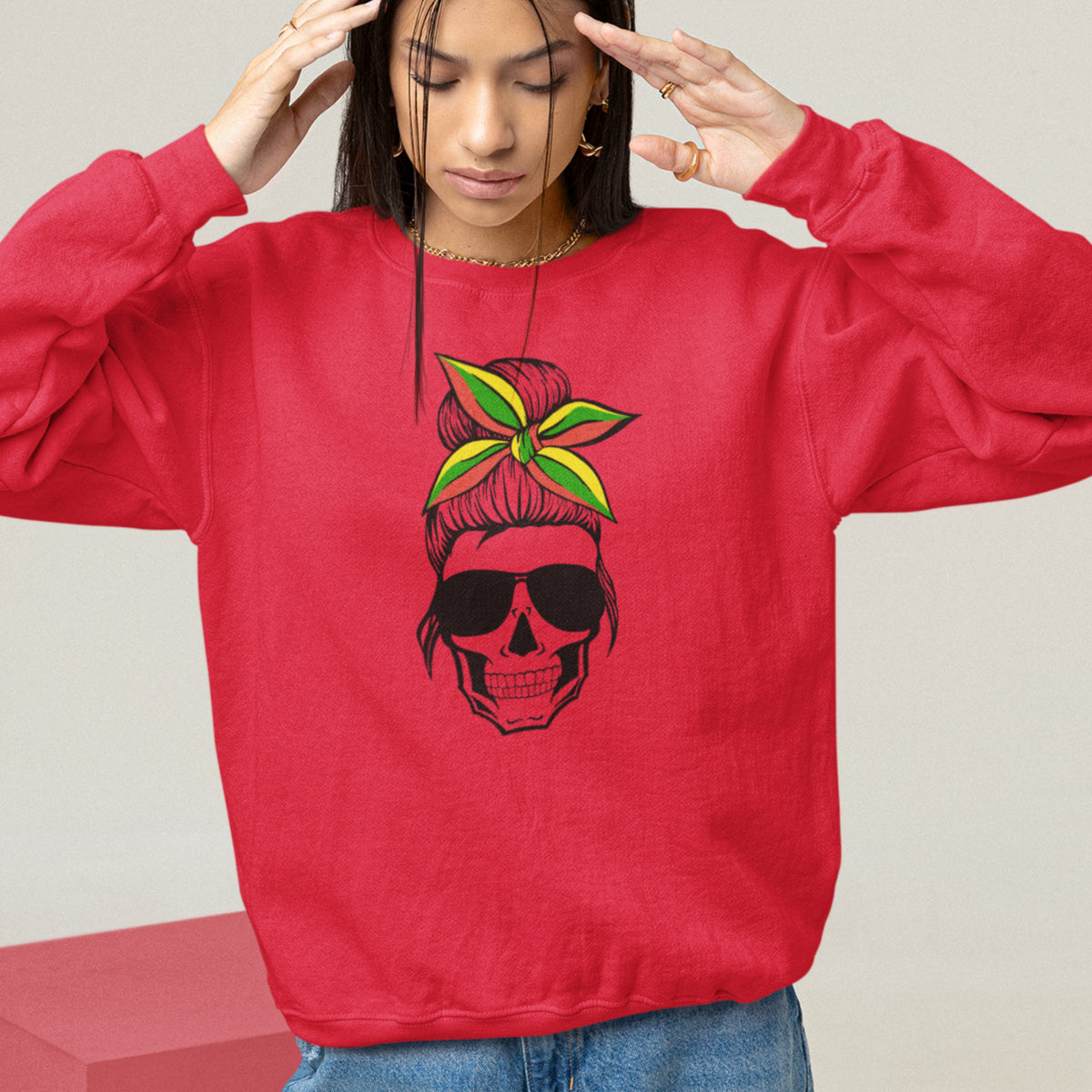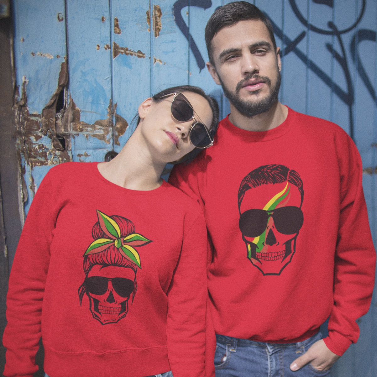 Raudoni džemperiai be gobtuvų poroms „Kaukolės“