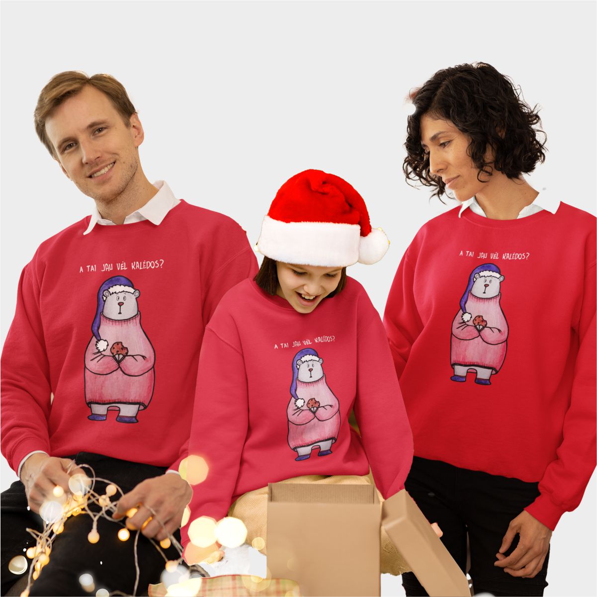 Raudoni UNISEX džemperiai šeimoms "A tai jau vėl"