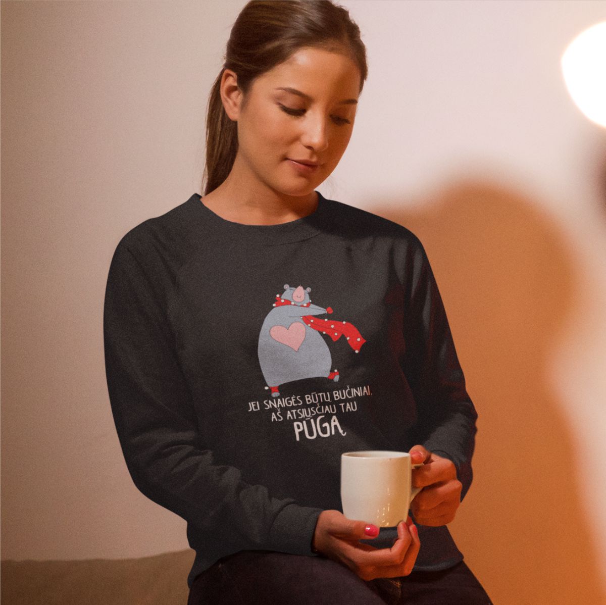 UNISEX juodas kalėdinis džemperis be gobtuvo "Pūga"