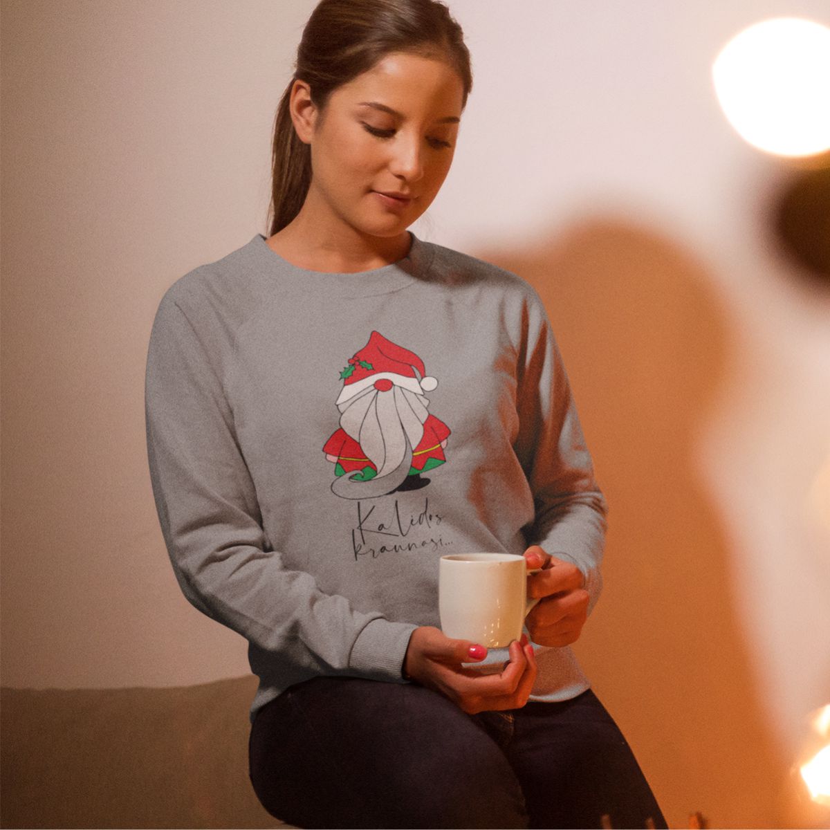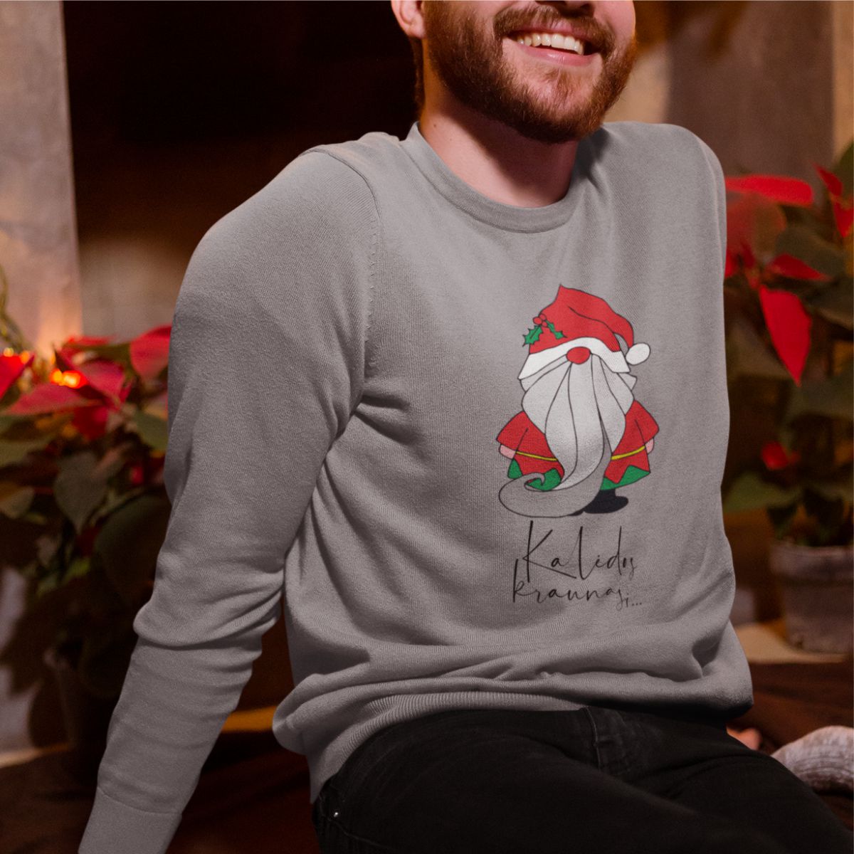 UNISEX pilkas kalėdinis džemperis be gobtuvo "Kalėdos kraunasi"