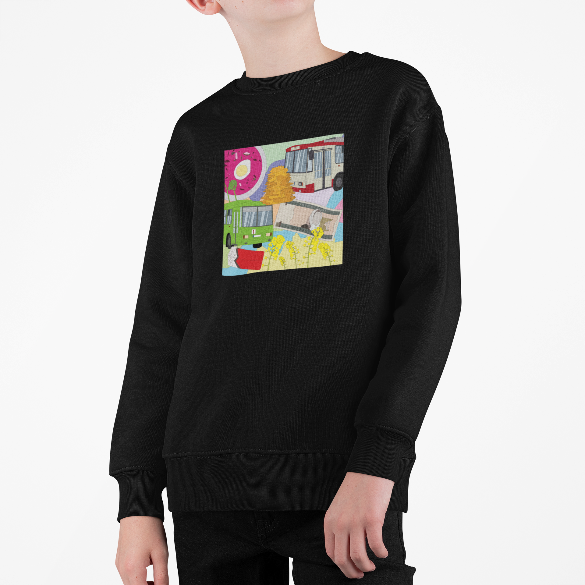 Džemperio modelis gali šiek tiek skirtis nuo esančio paveiksliuke. Skirtingi piešiniai gali būti su skirtingo modelio džemperiais. Tačiau sudėtis visų vienoda.
